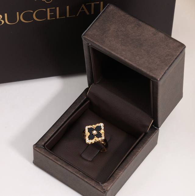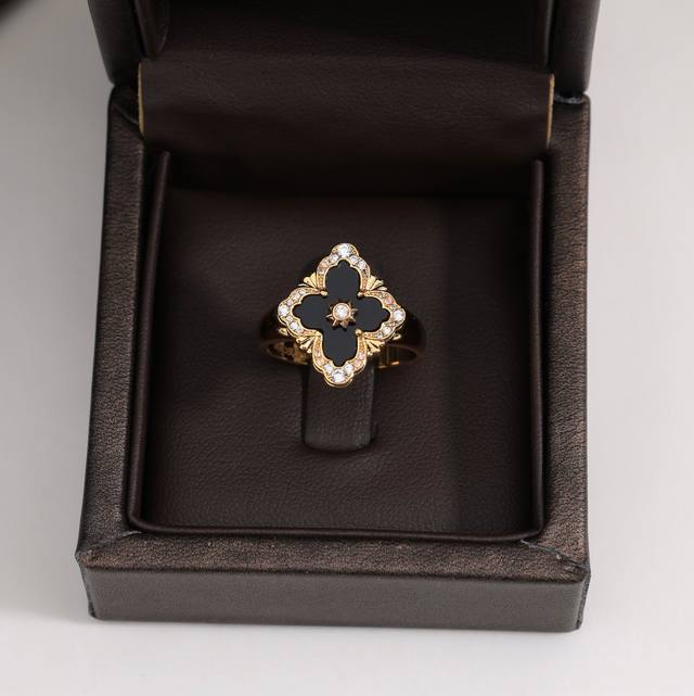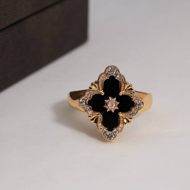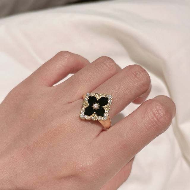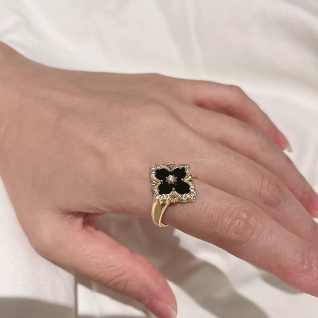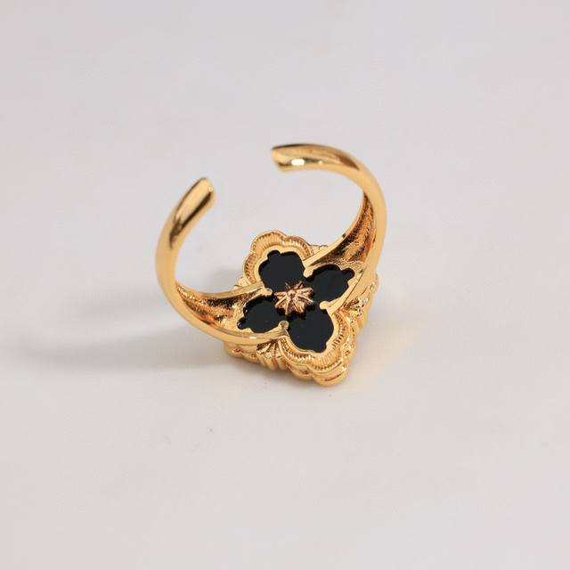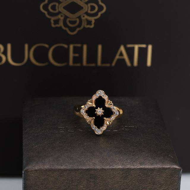 Buccellati, Italian high-end jewelry brand, vintage court style, diamond-studded brushed four-leaf clover, shell, agate, and chalcedony double-sided ring, V-gold material, 18K thick gold plating, high-quality Buccellati ring, four-leaf clover ring, one size fits all, adjustable.