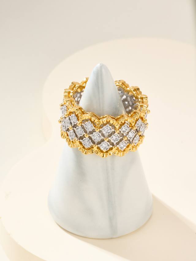 The lace diamond ring that has been in high demand is finally available. It is beautiful and effortlessly outlines the elements of nature into geometric shapes. The iconic hollowing craftsmanship is exquisite and elegant. Every detail of the lace exudes nobility. You will become an elegant fairy in a second when you put it on.