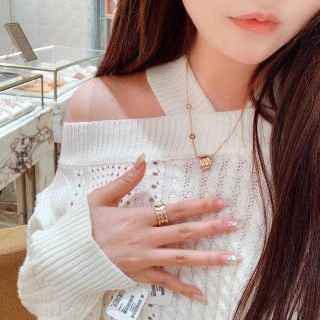B.Zero 1 necklace is decorated with a signature spiral rose gold chain, paired with precious pav
