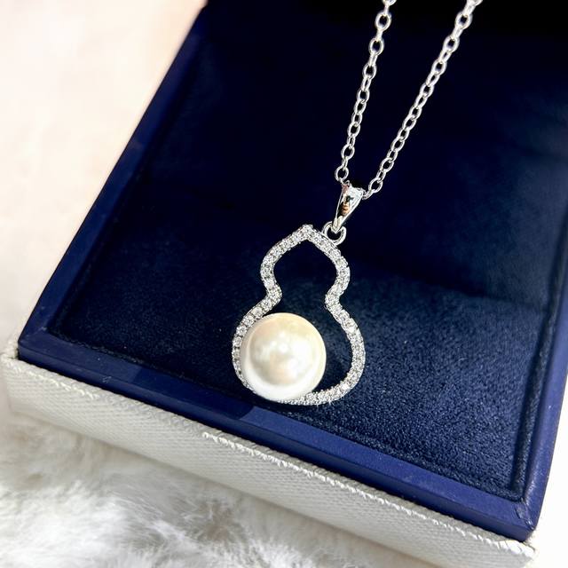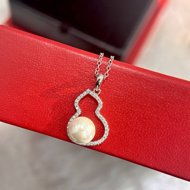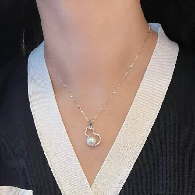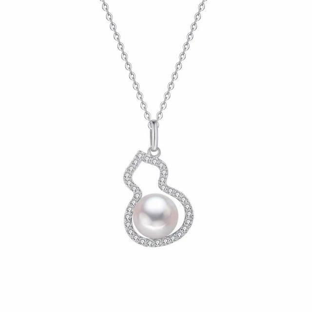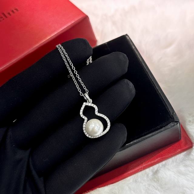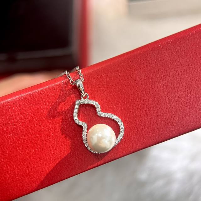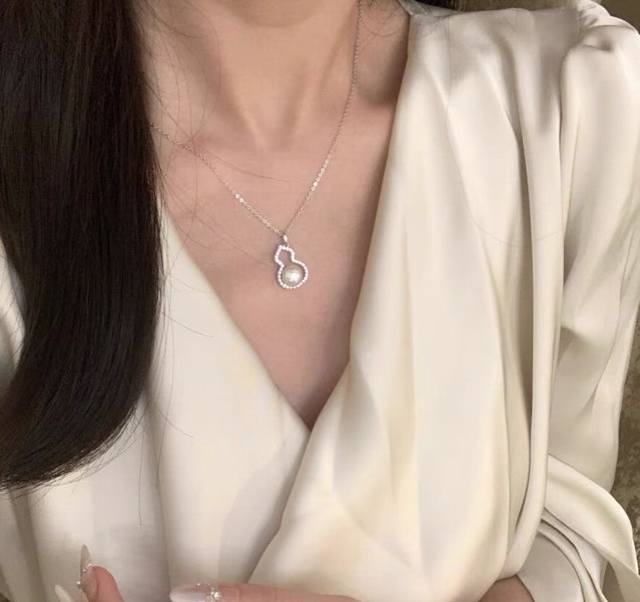C593 A delicate and high-end gourd and pearl openwork necklace, a goddess-style design. The gourd symbolizes good fortune and prosperity, making it a very eye-catching necklace. Adorned with pearls, this high-end custom-made 925 sterling silver necklace is plated with thick gold and has a superb texture. (