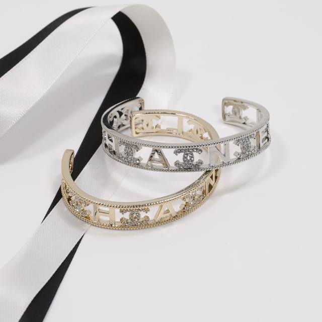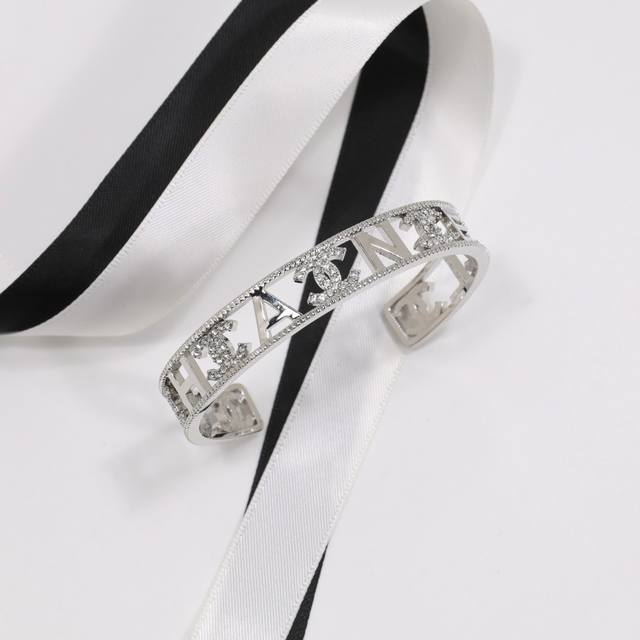 Ch Nel Bangle: A hollowed-out double-C rhinestone bangle. DDD