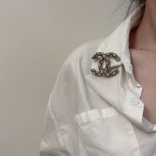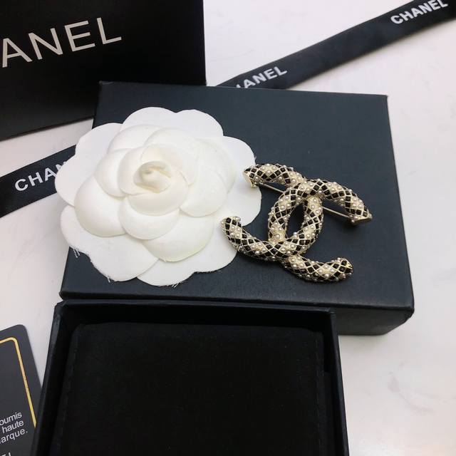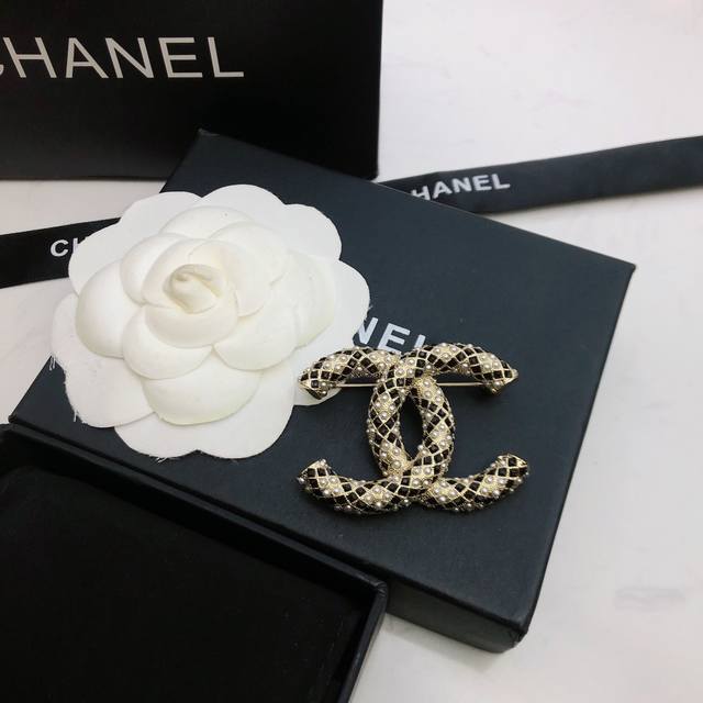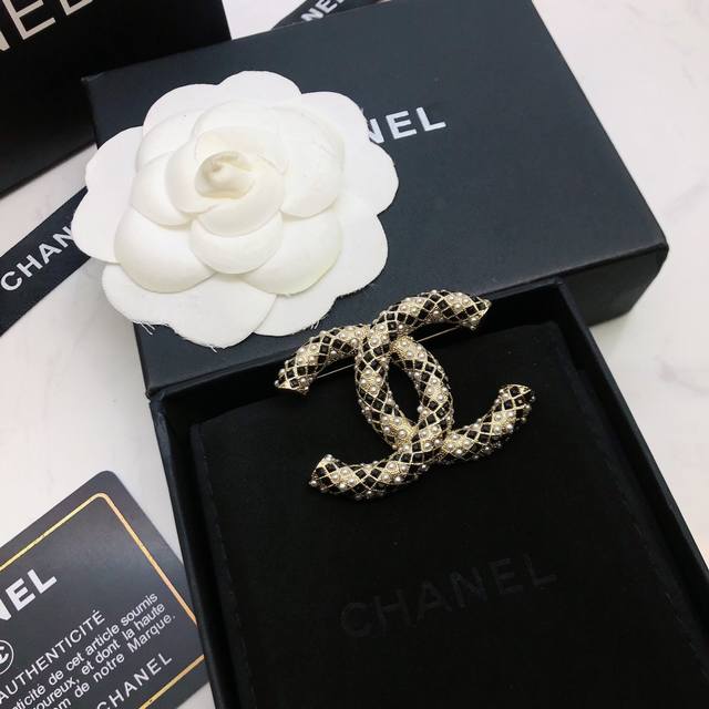 Ch Nel Black Square Diamond Pearl Brooch Ss Autumn and Winter Advanced Handicraf
