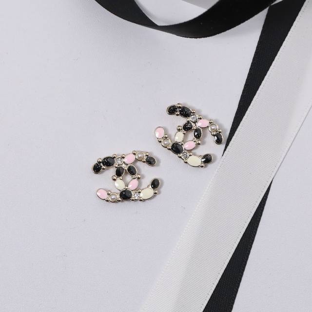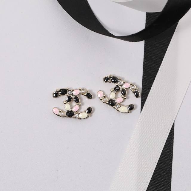 Ch Nel earrings: Oval colored enamel glitter double C rhinestone women's earrings. DDD