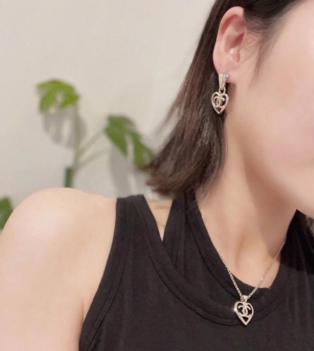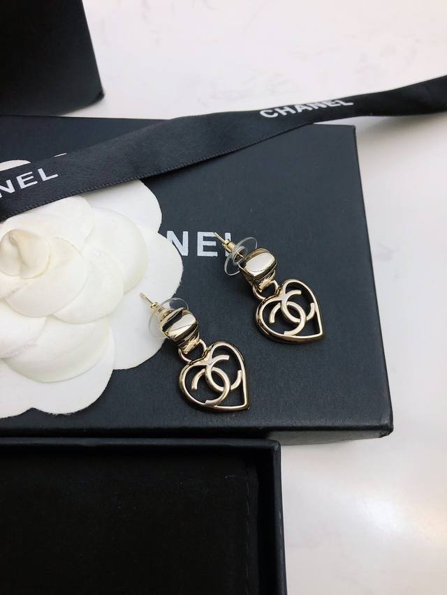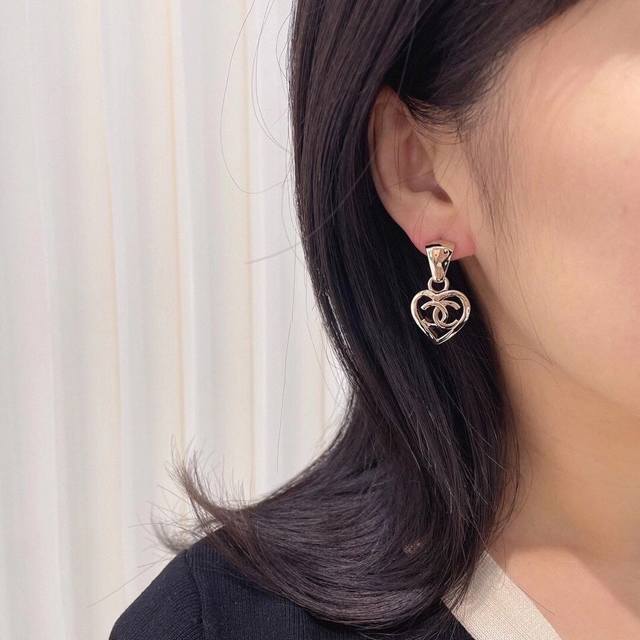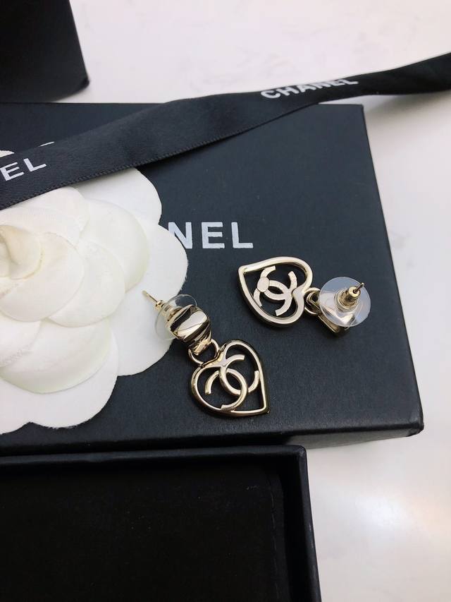 Ch Nel Spring/Summer Pre-Collection "Retro Elegant Girl Series" New Chanel-style Smooth Hollow Heart Earrings #BuyBuyBuy# Authentic brass base with top-quality electroplating, perfect for various everyday commutes and evening events. Casual yet classic, a beautiful fairy-like item. Recommended for personal use. Comes with full original boutique packaging. Earrings.