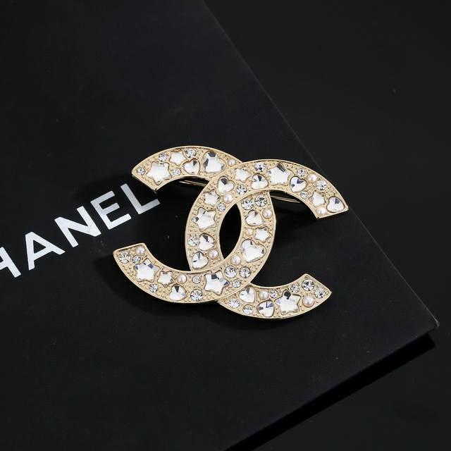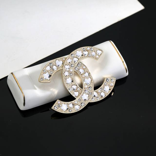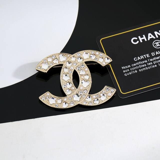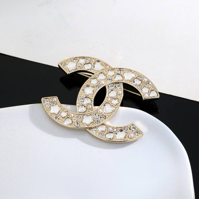 Ch Nel's latest crystal brooch is incredibly sophisticated and eye-catching. Crystals inlaid with large and small diamonds combine with the brand's classic double C, and the light gold electroplating creates a luxurious feel! The circle creates a cool, contoured silhouette, adding a touch of elegance to any look, making it effortlessly stylish! Brooch