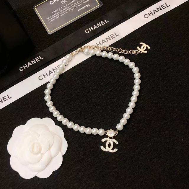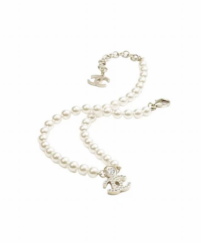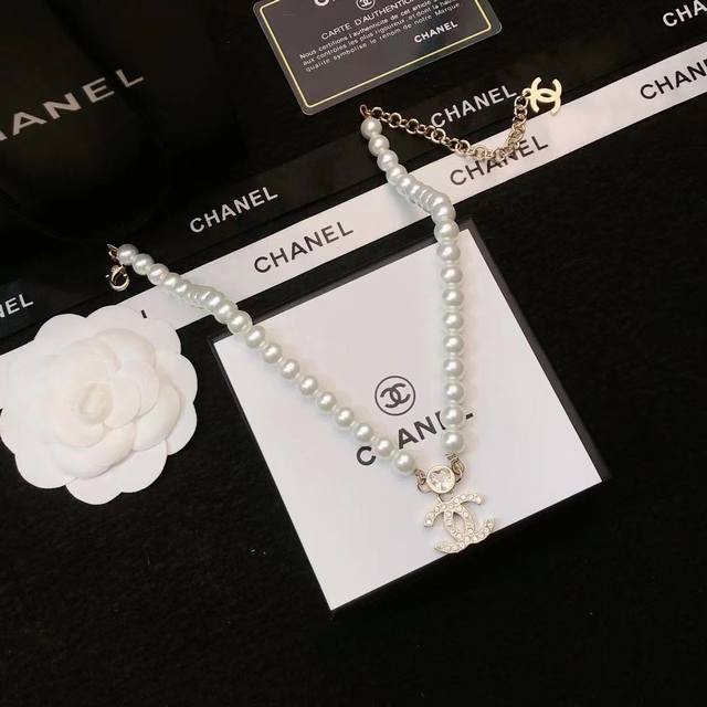 Hollow gold bean rhinestone pendant with diamond double C, small gold double C Bling Bling smart and exquisite