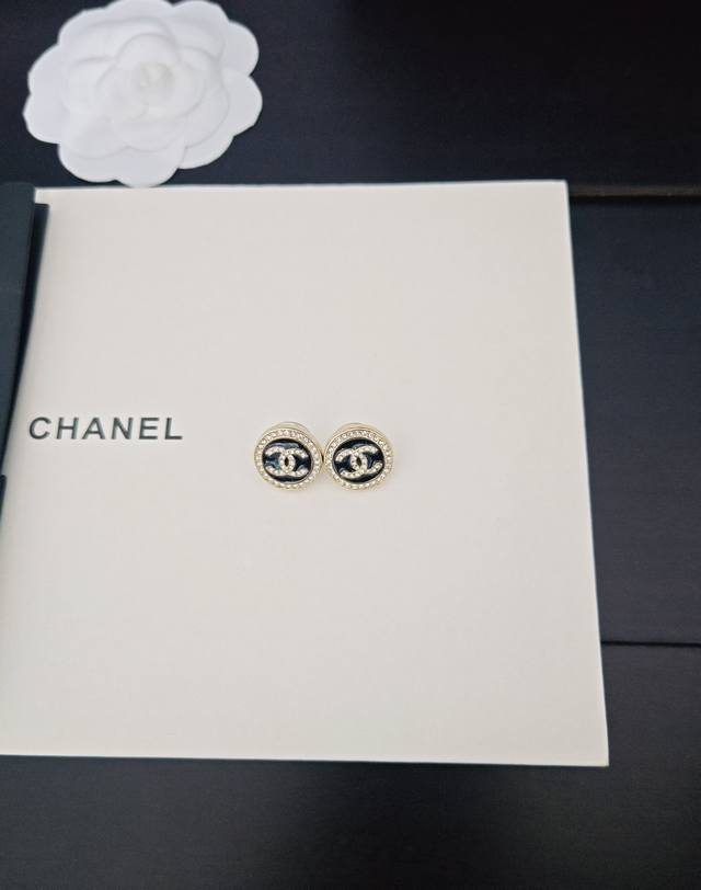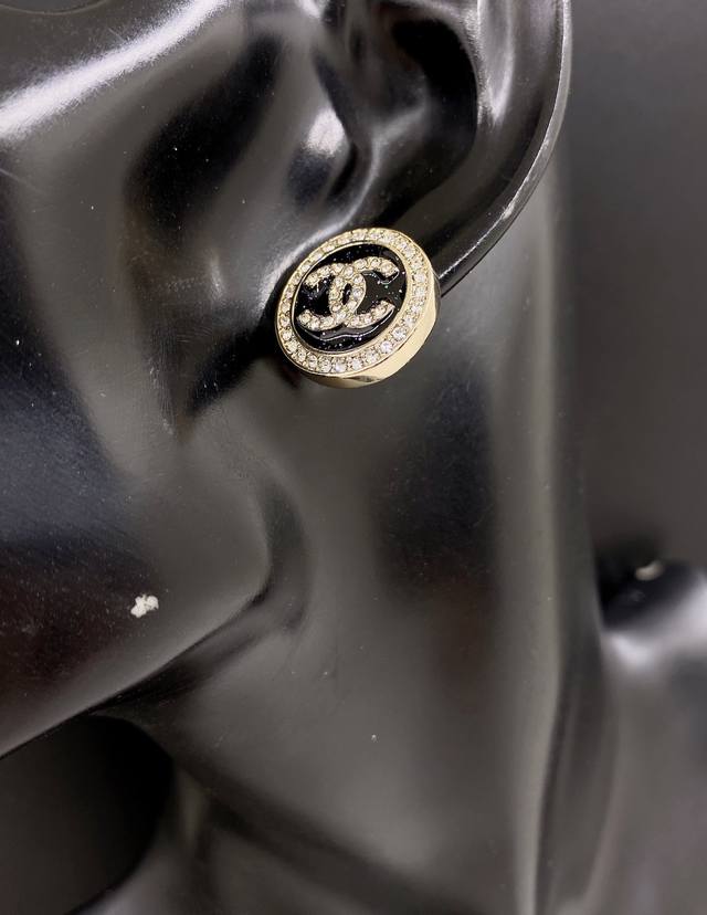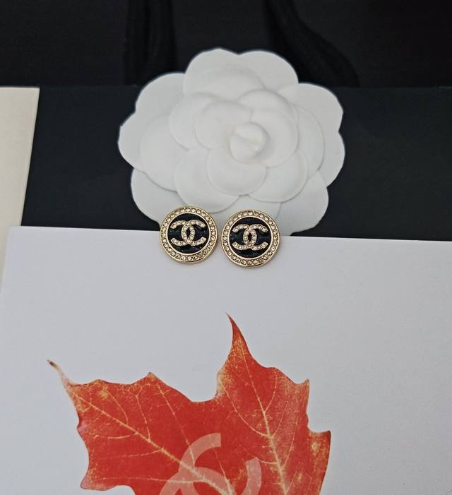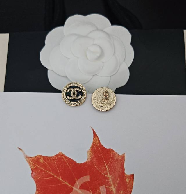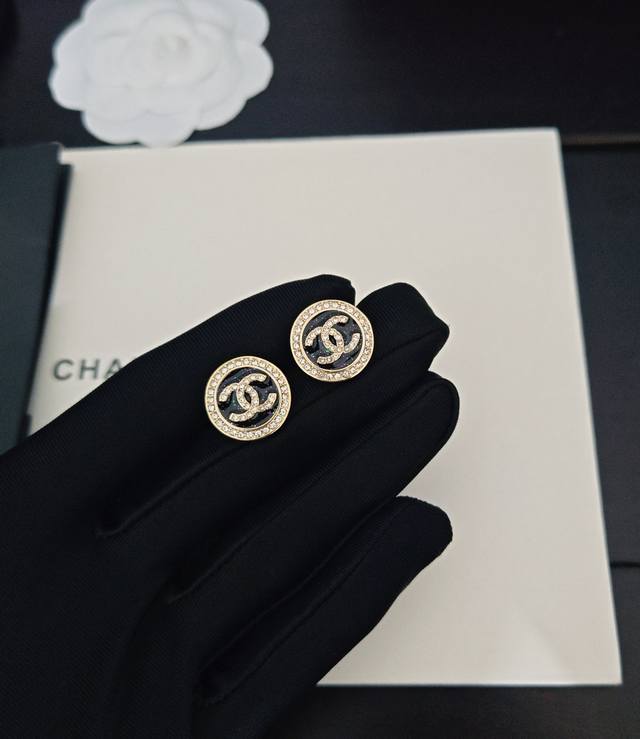 / Ch*Nel latest round full diamond black earrings consistent Zp brass material DDD