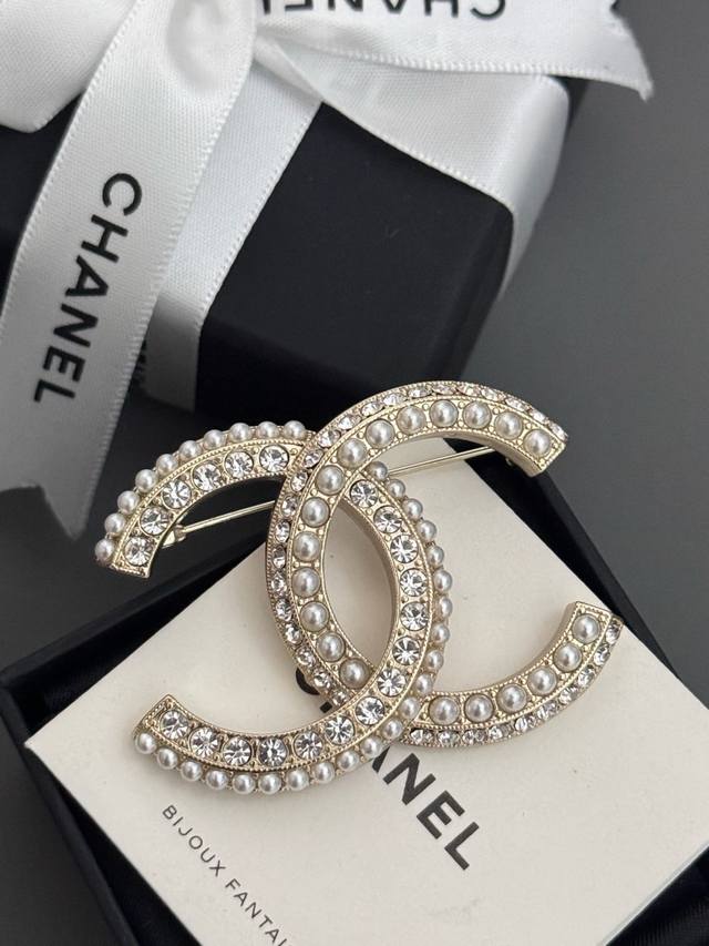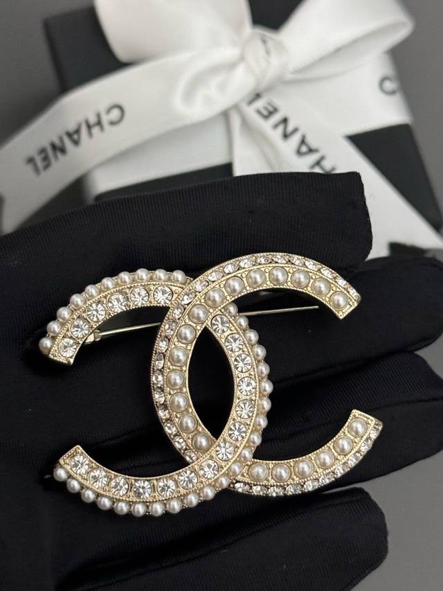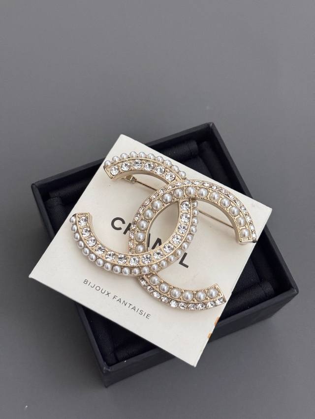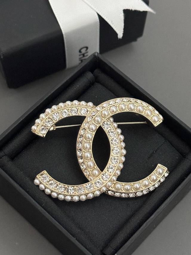 / Ch*Nel Latest style half-diamond half-bead Cc brooch, consistent with batch Z, b