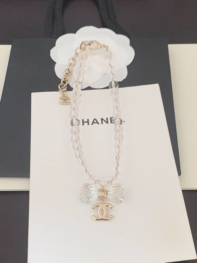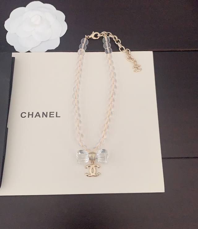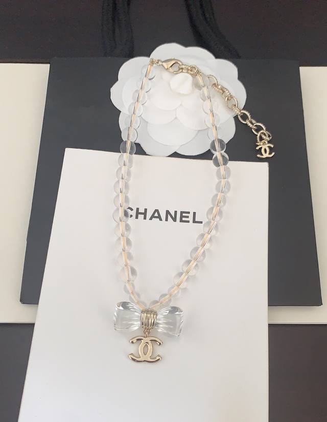 / Ch*Nel Latest Transparent Bow Necklace, identical to Zp, made of brass.