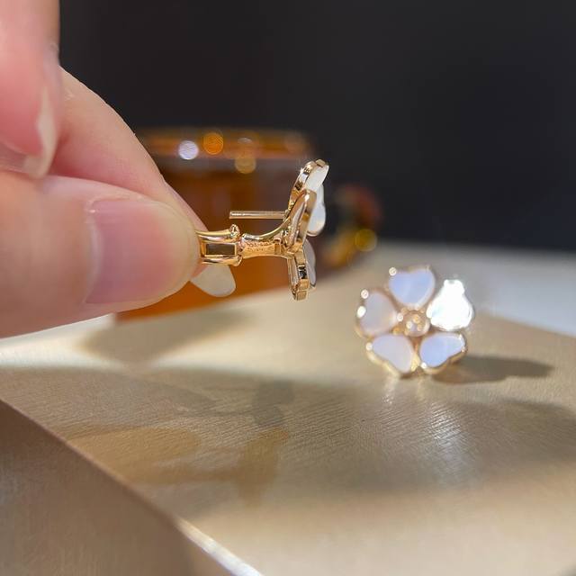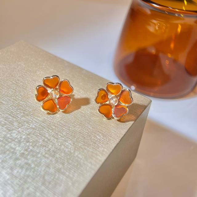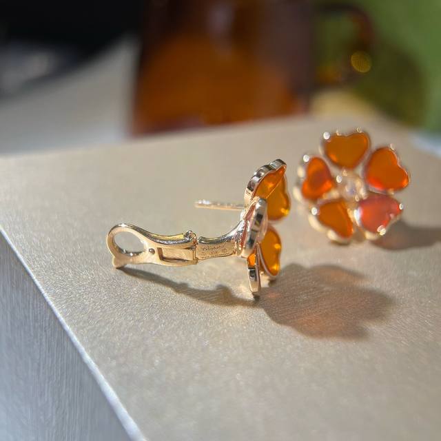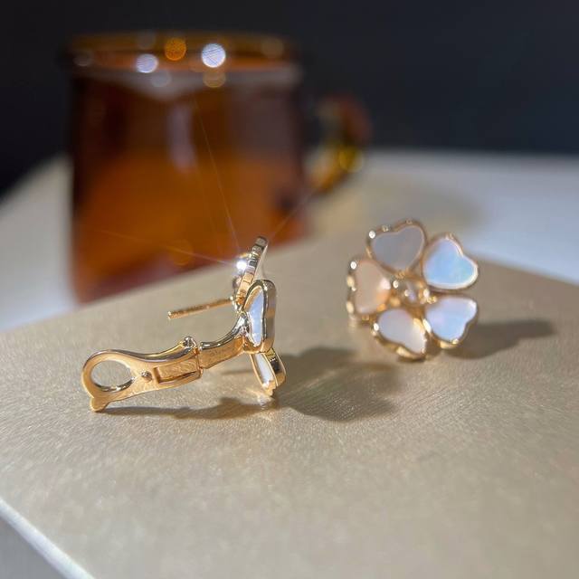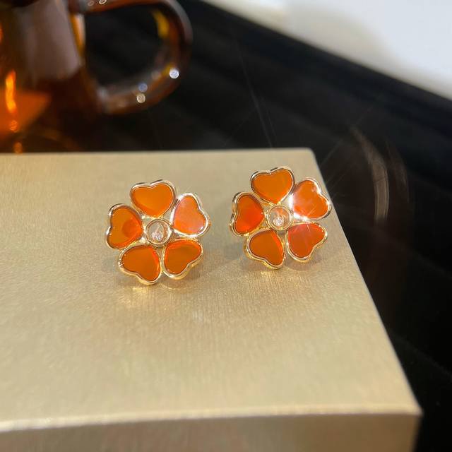 Chopard Hapipi Y Hearts Flowers earrings feature Chopard's iconic heart shape, with five hearts forming a crown surrounding a dancing diamond, giving rise to delicate and charming flowers. Lively diamonds, creating the extraordinary! Made from natural mother-of-pearl with top-tier jewelry craftsmanship.