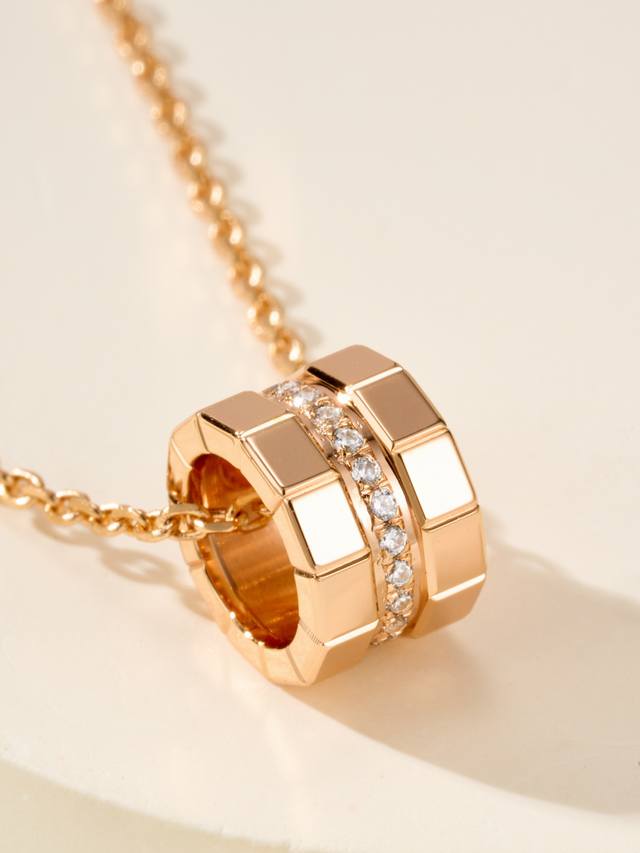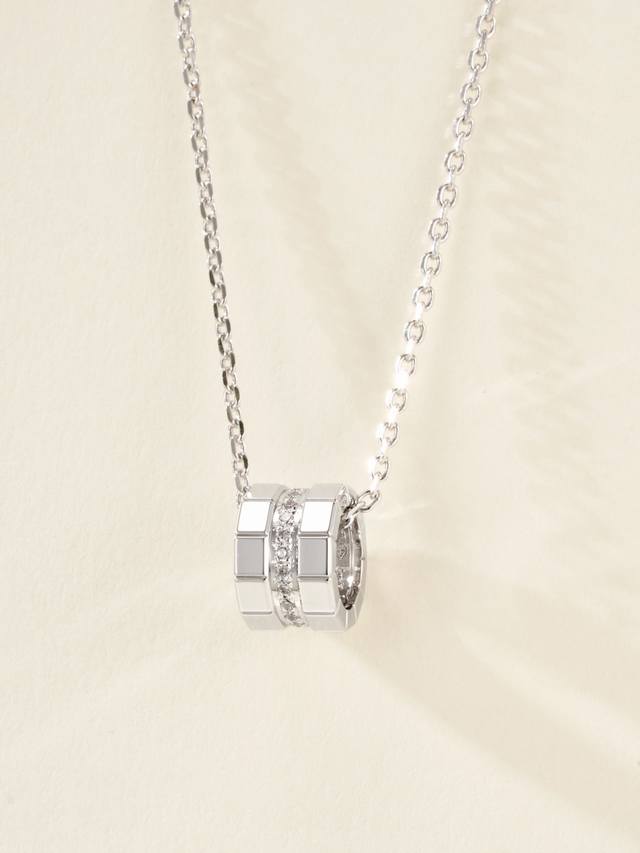 Chopard Little Ice Cube Collection Narrow Diamond Necklace. A cool, chic aesthetic, the piece draws inspiration from the fundamental structure of matter, creating a three-dimensional shape through the stacking of crystal lattices. Hand-polished details are poured into every detail, ensuring each facet reflects dazzling brilliance under light. Clean, crisp lines create a neutral, fashionable, and minimalist style. The angular design exudes a cool, modern feel, suitable for both work and casual wear. The long chain is adjustable from 40 to 45 cm, making it ideal for women.