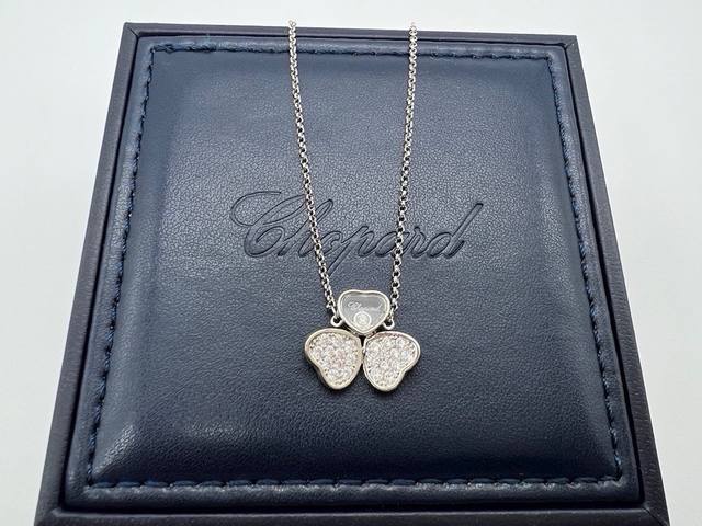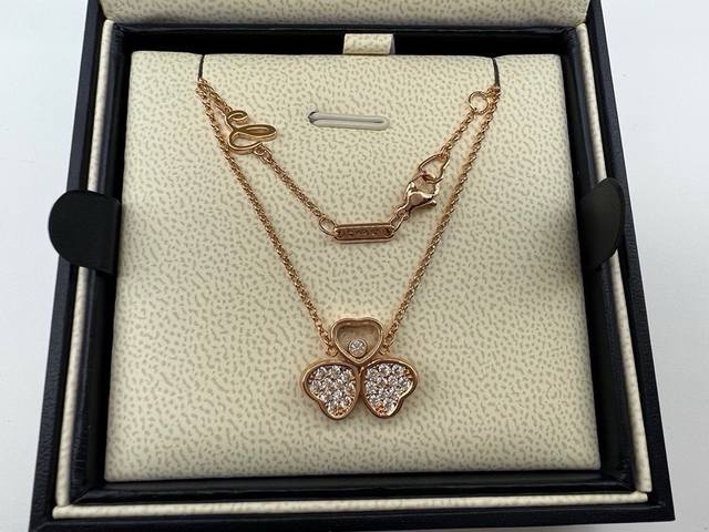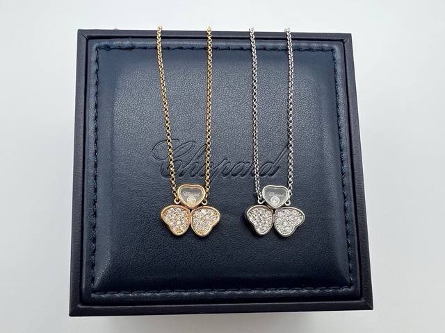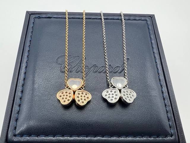 Chopard necklace, clover necklace inlaid with dynamic diamonds, plated with 18K gold, anti-fading craftsmanship, dynamic pendant necklace, beating heart necklace, rotating chain length 45cm, white gold and rose gold.