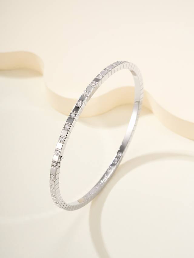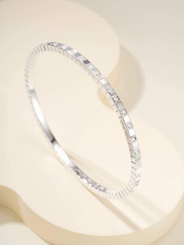 Chopin small ice cube narrow diamond bracelet size 17 super design, the light flashes, the fragmented starlight dances wildly. Simple thin ring + square shape, it instantly becomes exquisite when paired with a T-shirt, and it is even more luxurious when paired with a small skirt. It is a jack of all trades~