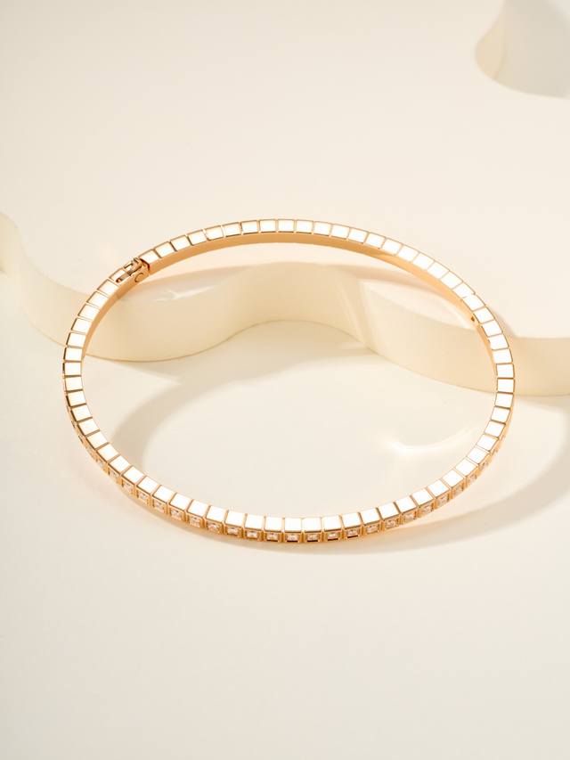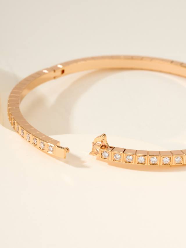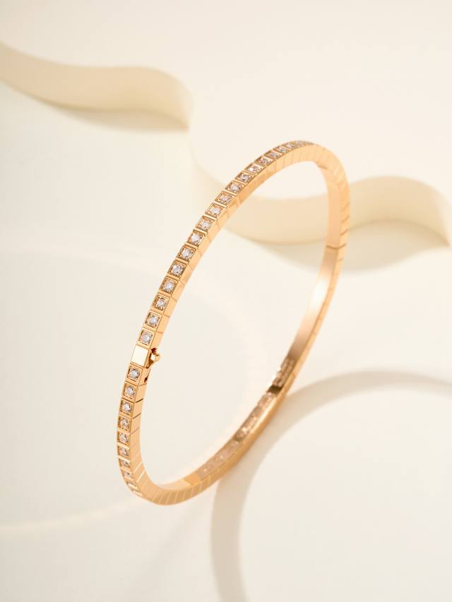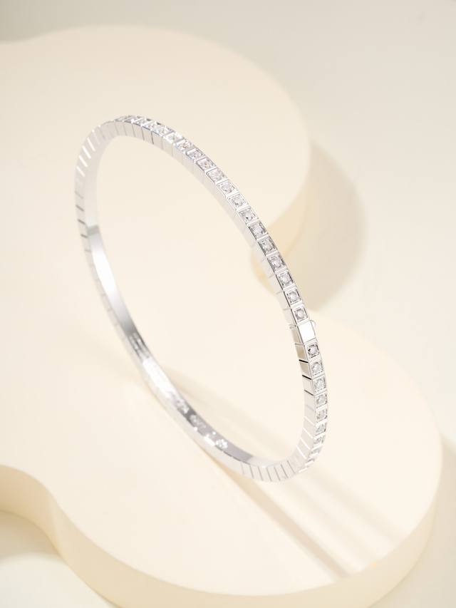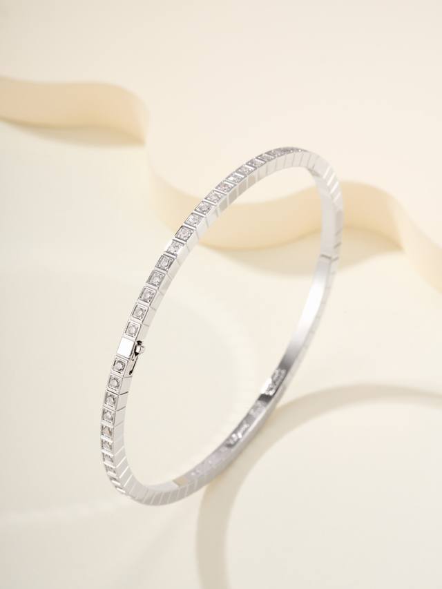 Chopin small ice cube narrow full diamond bracelet size 17 super design, the light flashes, the fragmented starlight dances wildly. Simple thin circle + square shape, it instantly becomes exquisite when paired with a T-shirt, and it is even more luxurious when paired with a small skirt. It is a jack of all trades~