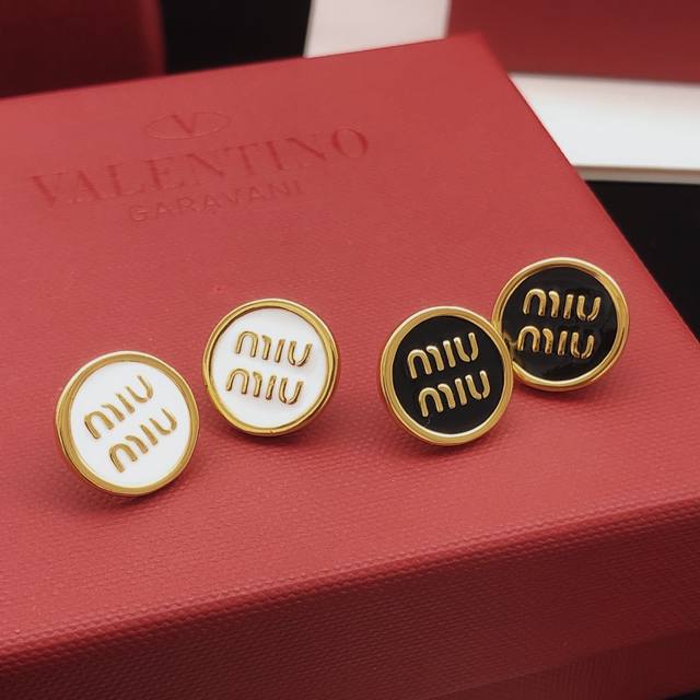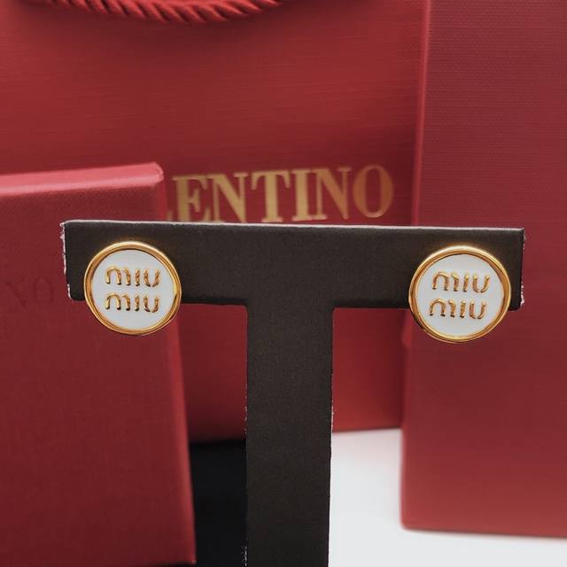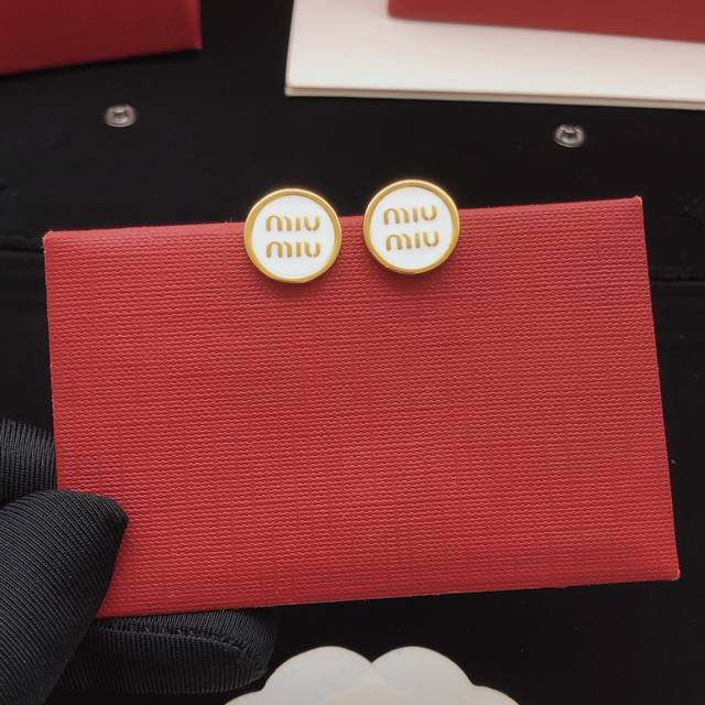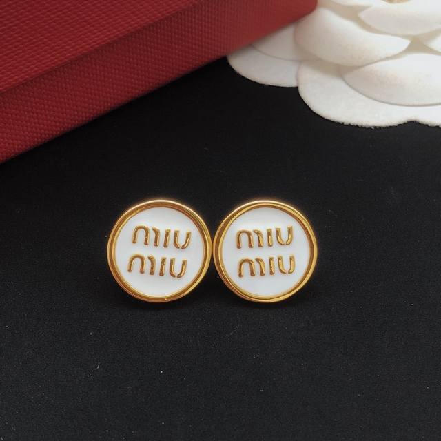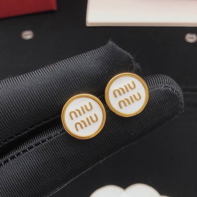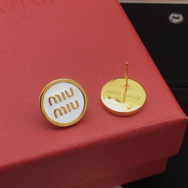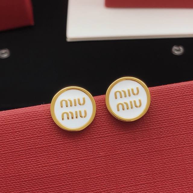 / Code Med0025 Miu Miu* Latest Model Round White Earrings, Zp Brass Material