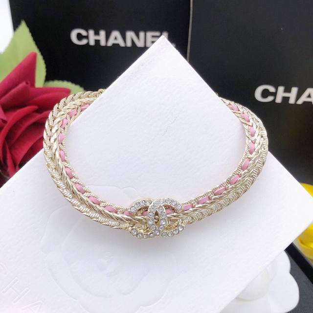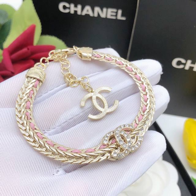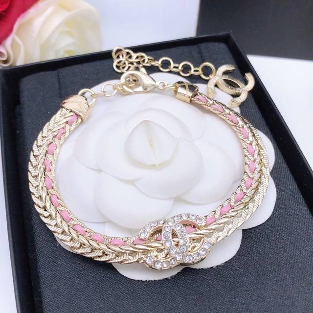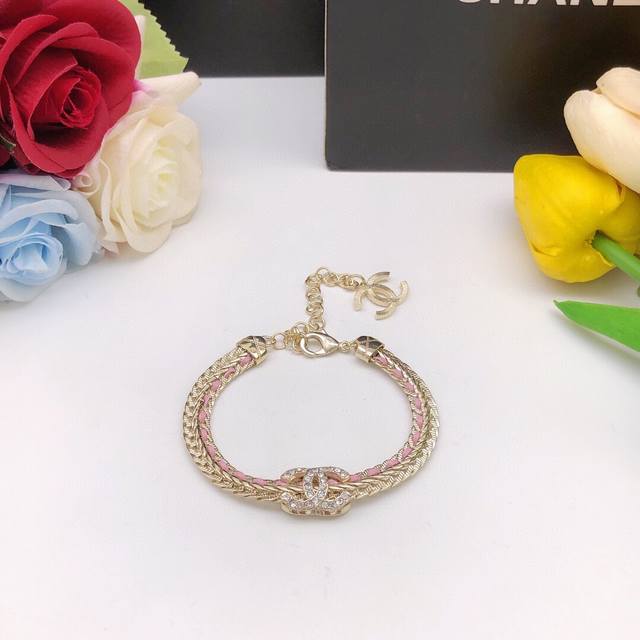 / Code Xsl0023 Ch*Nel Latest Pink Leather Bracelet Consistent Zp Brass Material