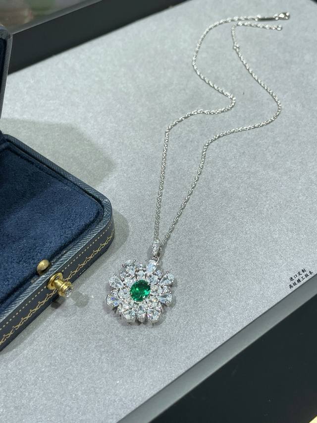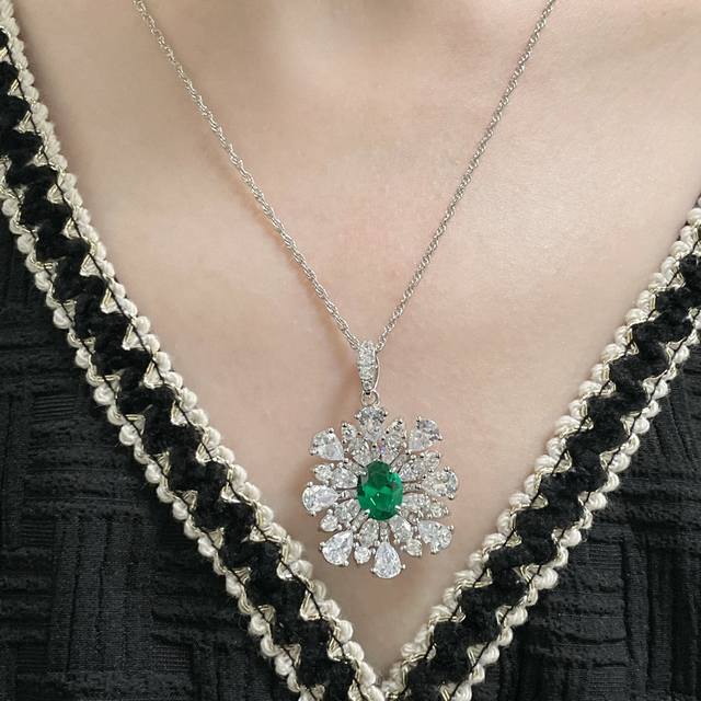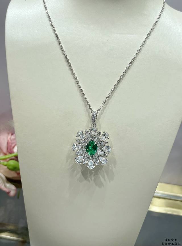 Colored Gemstone: Custom imported floral green diamond necklace. Green diamonds are believed to aid healing, serve as a bridge of connection, and bring a refreshing, joyful energy. Green is also the light of wealth, attracting wealth and bringing luck. This green diamond boasts a rich and vibrant color and vibrant fire. Paired with white diamonds, it creates a sophisticated, elegant yet stylish look that exudes a fresh, life-enhancing quality.