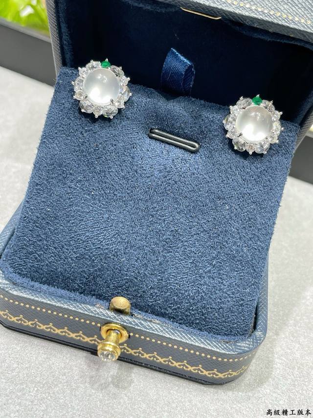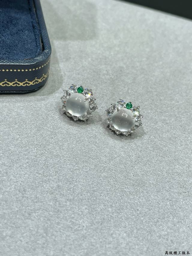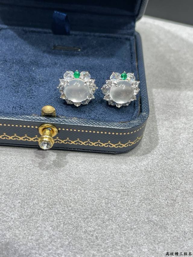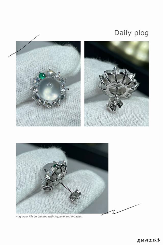 Colored treasure: imported custom 925 exclusive custom single green diamond water foam jade earrings are noble and luxurious, exquisite and elegant, not afraid of collisions, the texture of real gold and silver is full of translucency, the luster is warm, and there are no impurities, just like the crystal clear feeling of ice and snow, which can modify the face shape and brighten the skin tone. The diamonds around it are like petals spread out, bright and charming, and green is used as the essence embellishment. No matter where you look at it and under what light, its effect will surprise you and surprise you, excellent without words