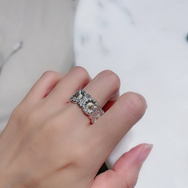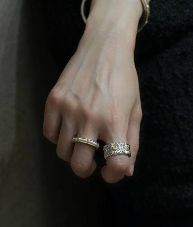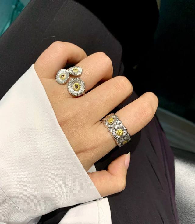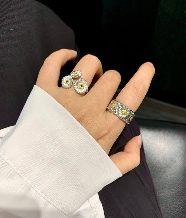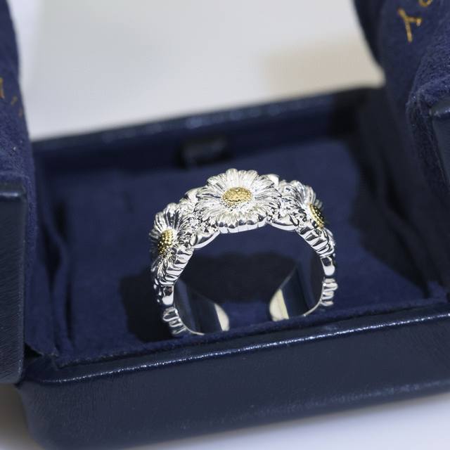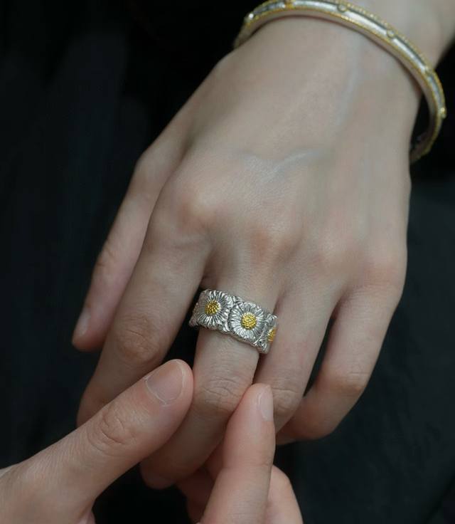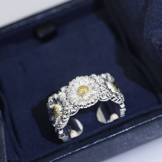 Daisy Ring, Buccellati, Italian High-End Jewelry Brand, Vintage Court Style Ring, Made of 18K Thick Gold with Two-Tone Electroplating, High-Quality Buccellati Ring, Sunflower Ring. (