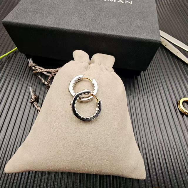/ David Yurman 12.3*4mm Silver and White Diamond Renaissance Cable Earrings