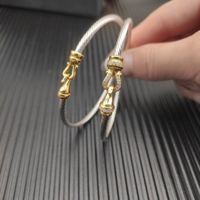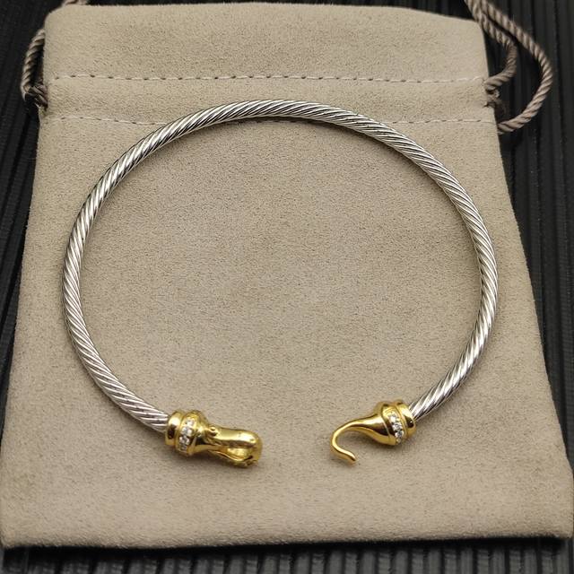 / David Yurman 3mm gold hook bracelet with diamonds