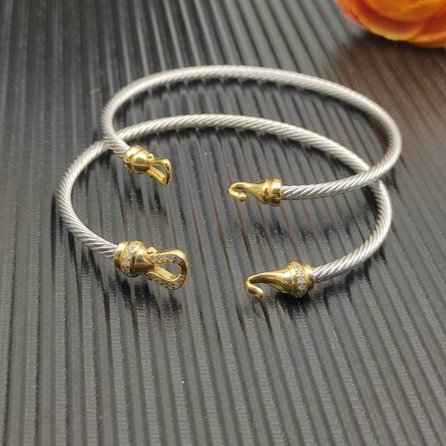 David Yurman 3mm gold hook bracelet with diamonds
