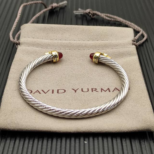 David Yurman 5mm gold-headed, 5-row silver diamond bracelet. Red diamonds, recom