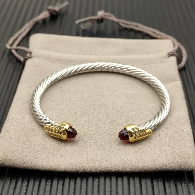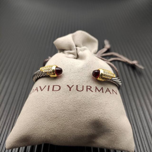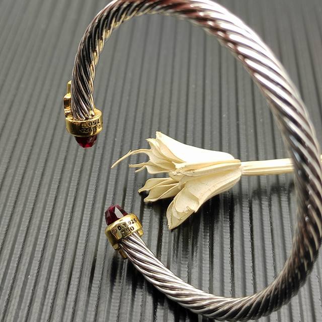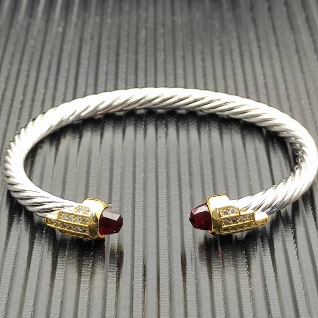 David Yurman 5mm gold-headed, 5-row silver diamond bracelet. Red diamonds, recommended wrist circumference 15-20cm
