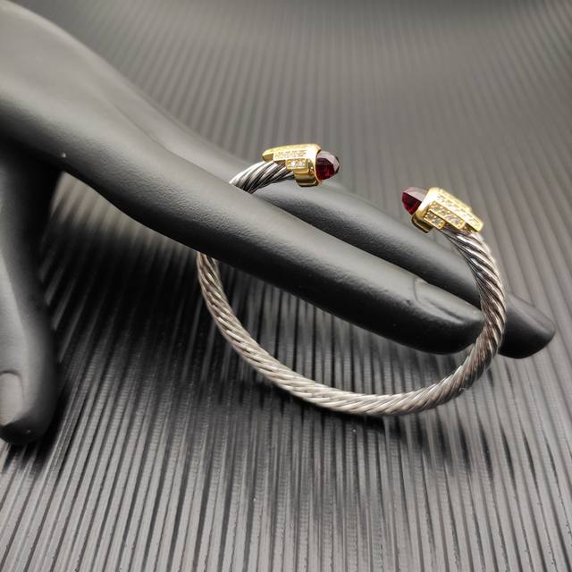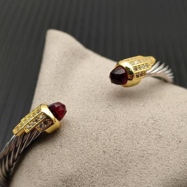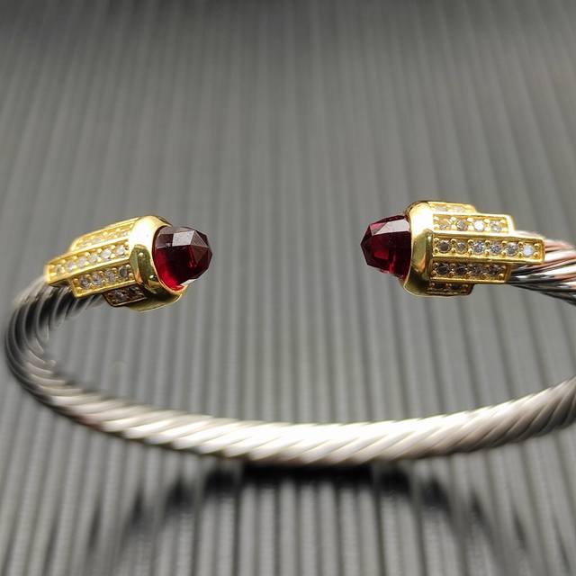 / David Yurman 5mm gold-headed, 5-row silver diamond bracelet. Red diamonds, recom