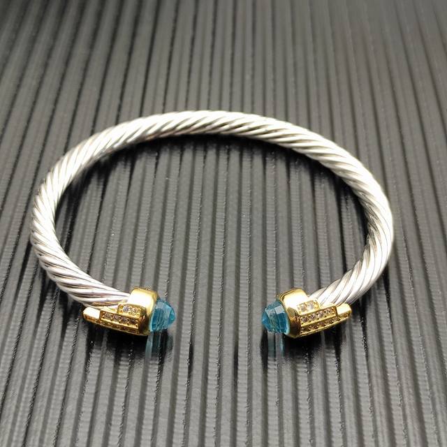 David Yurman 5mm gold-tipped, 5-row silver diamond bracelet. Blue diamonds, recommended wrist circumference 15-20cm