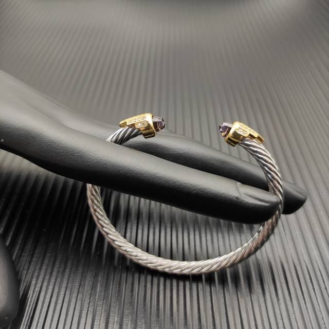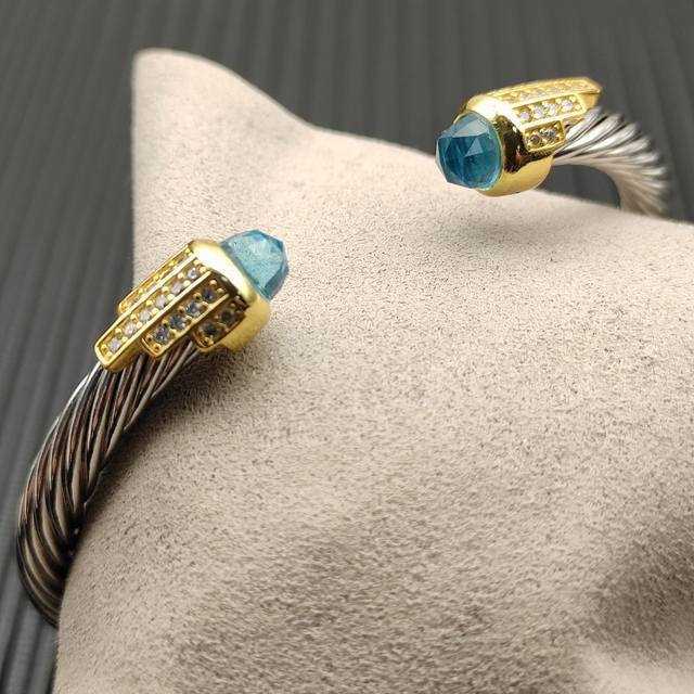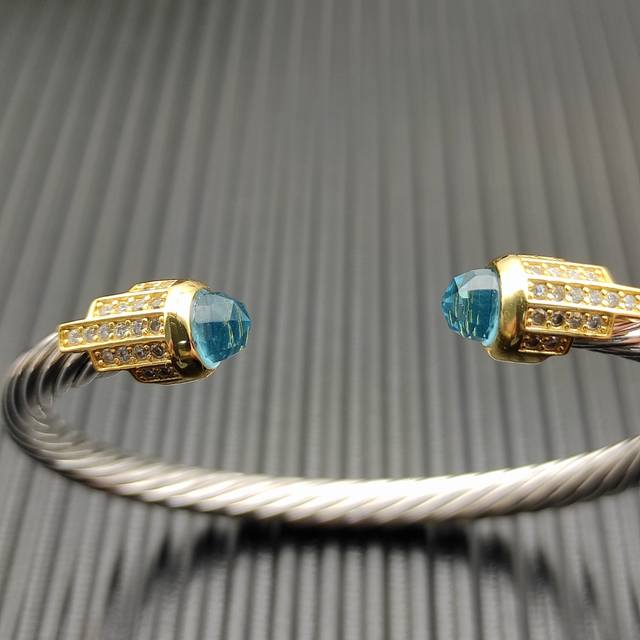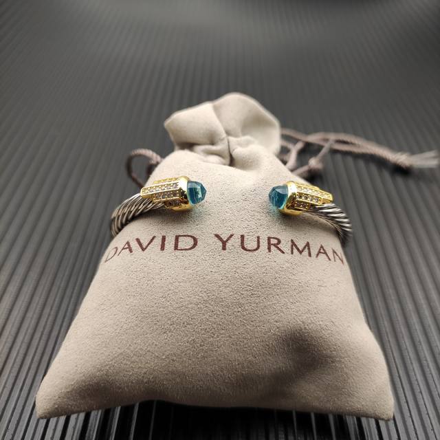 / David Yurman 5mm gold-tipped, 5-row silver diamond bracelet. Blue diamonds, reco