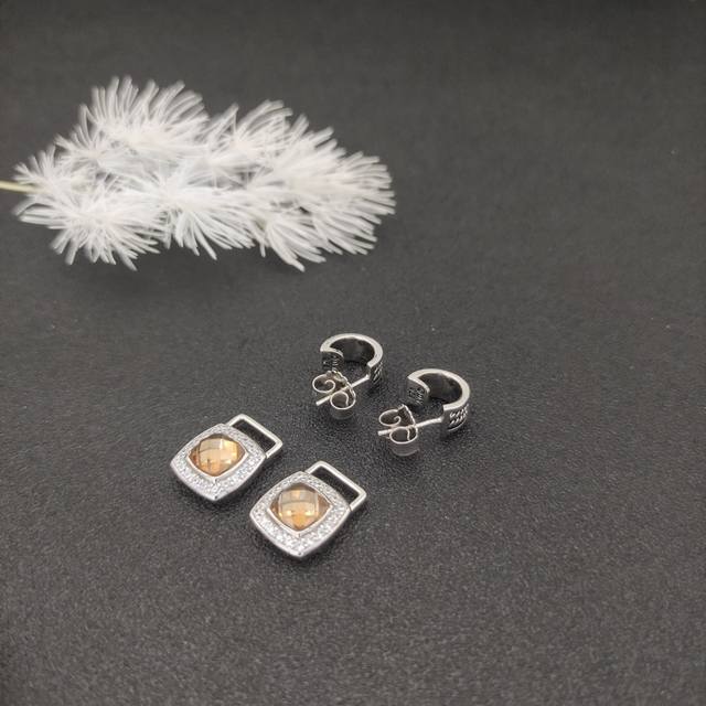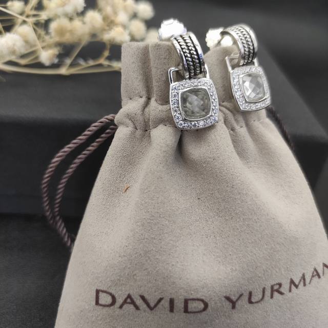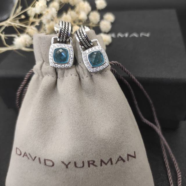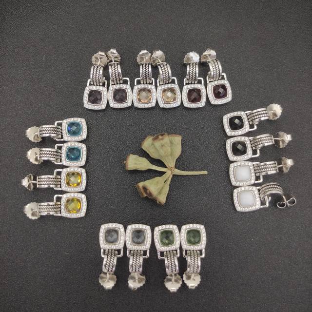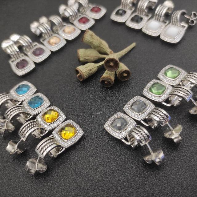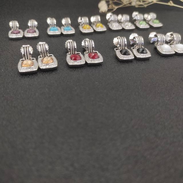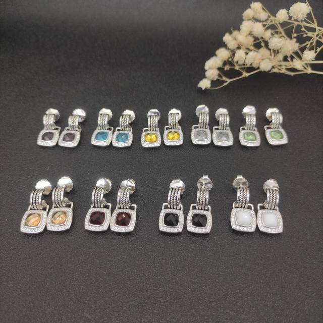 David Yurman 7Mm Center Stone Square Diamond Threaded Earrings, Available In Purple, Red, Blue, Black, Yellow, Champagne, Green, White Onyx, And White Diamond. Nine Styles. Item Number: Dyeh-031-39