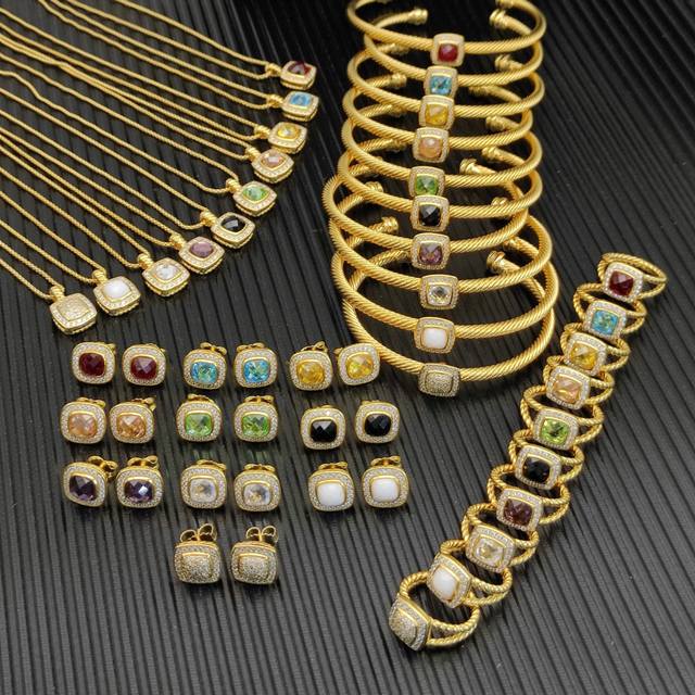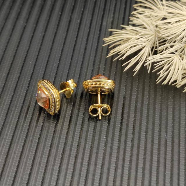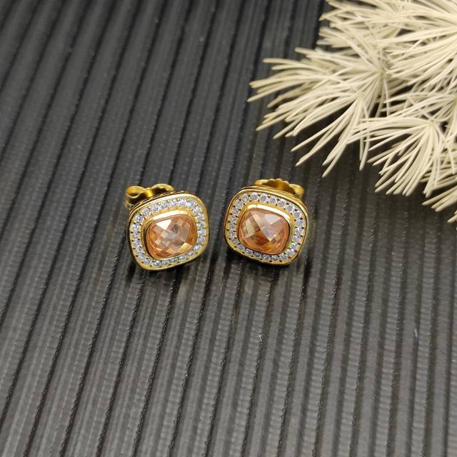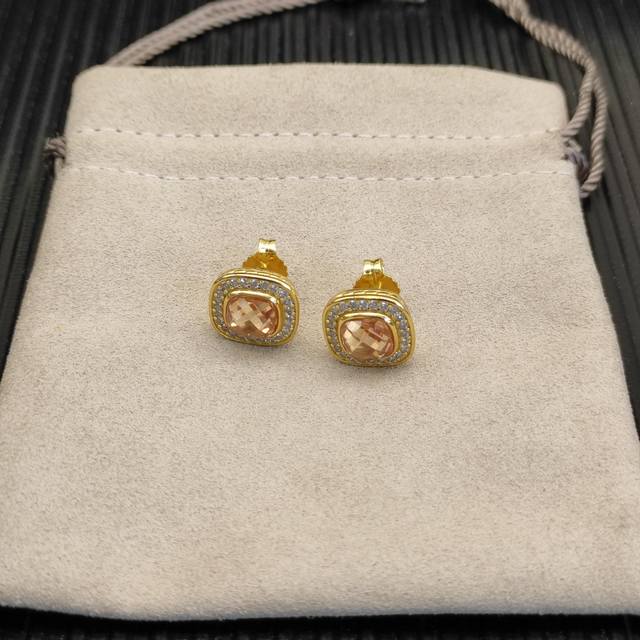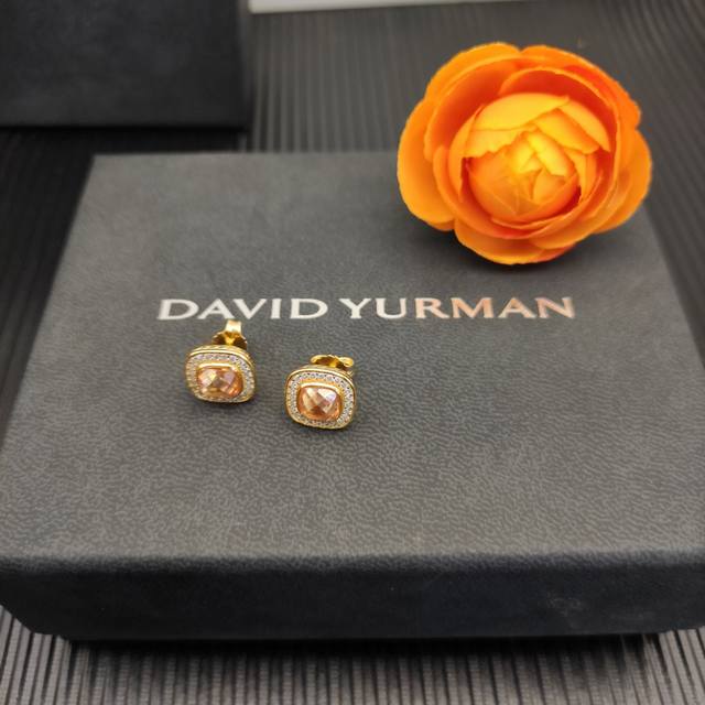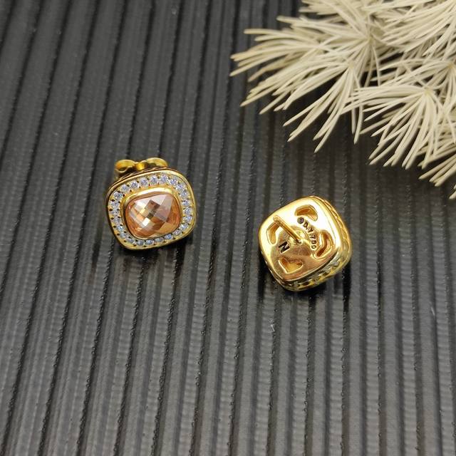 / David Yurman 7mm gold square diamond earrings with champagne diamonds.
