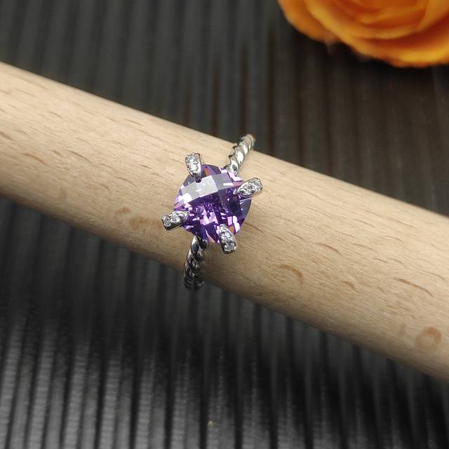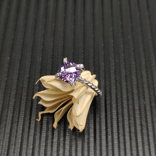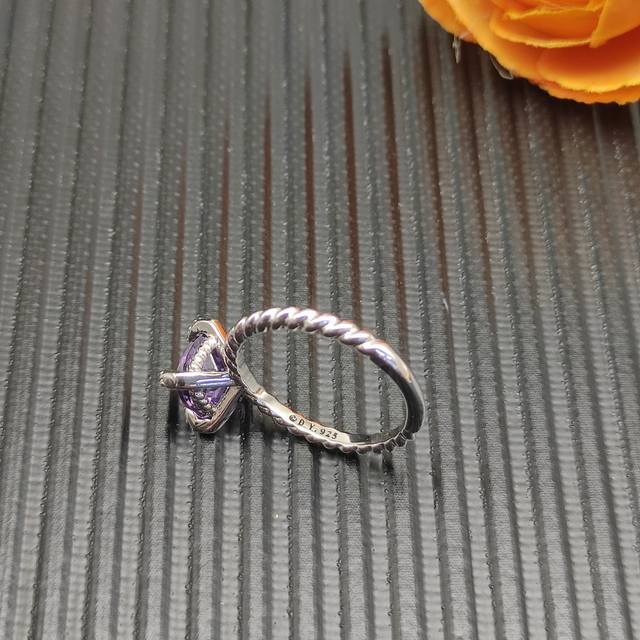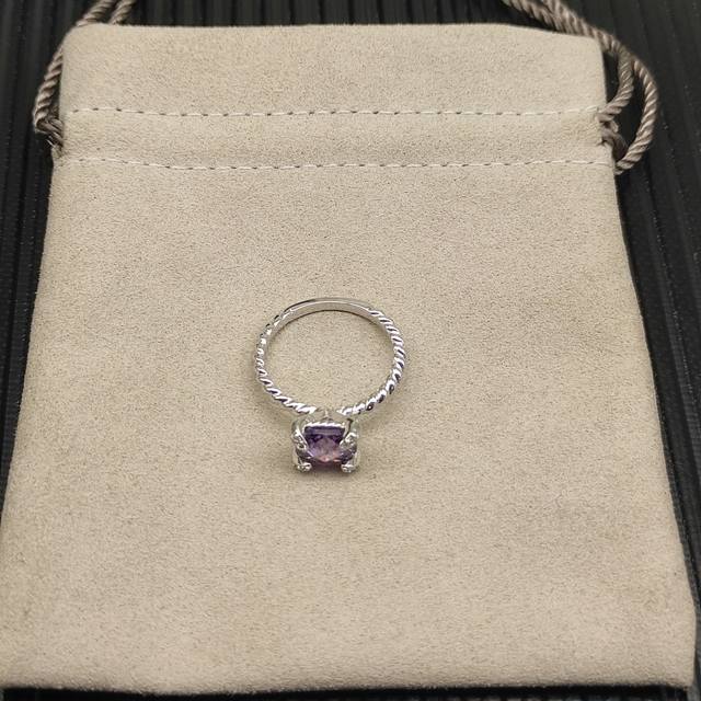 David Yurman 8mm four-claw purple diamond ring. Sizes: US 6-7-8-9, four sizes