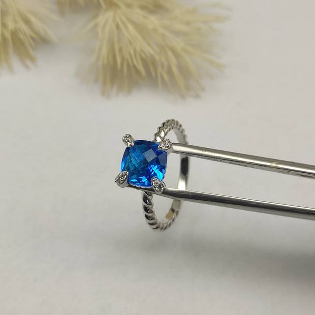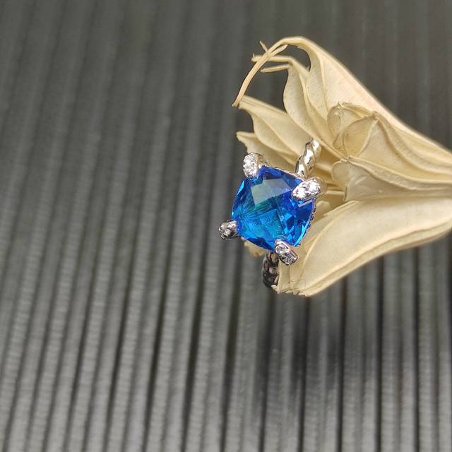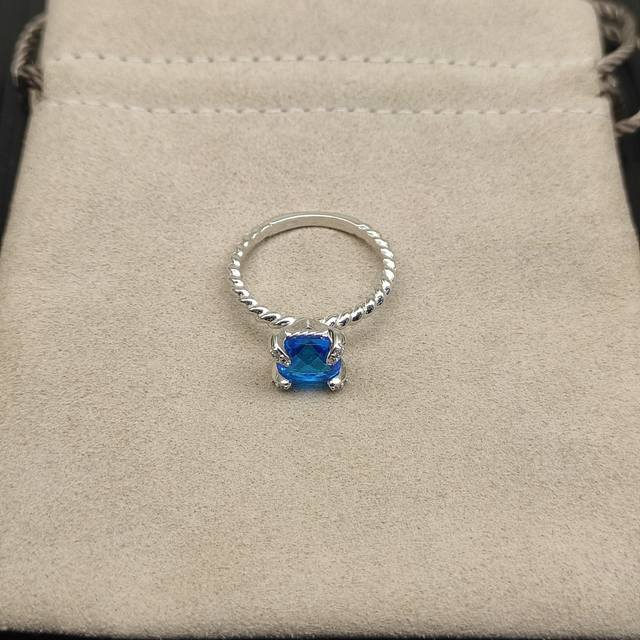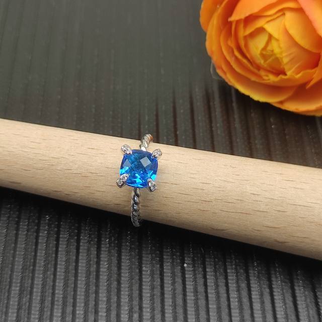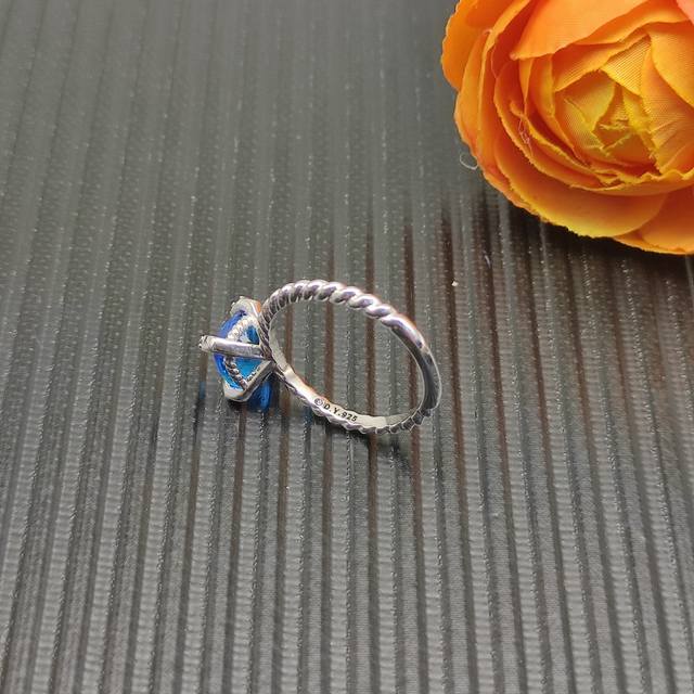 David Yurman 8mm four-prong blue diamond ring. Sizes: US 6-7-8-9, all four sizes are numbered Dyjz-146