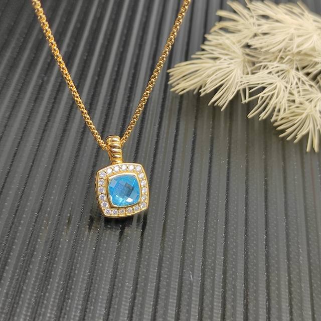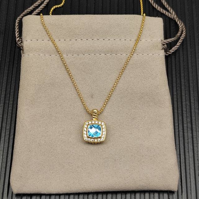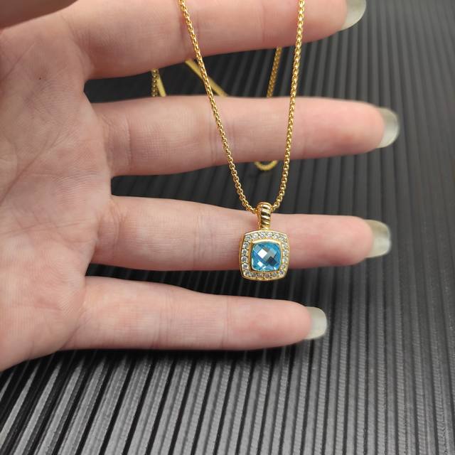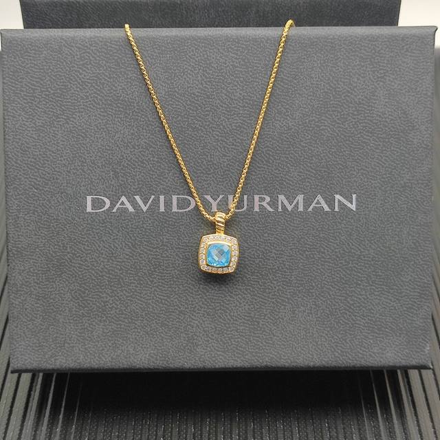 David Yurman blue diamond and gold square diamond necklace. Chain thickness 1.5mm, length 45+5cm delay chain