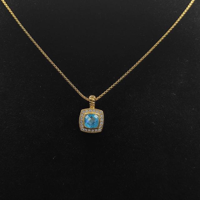 / David Yurman blue diamond and gold square diamond necklace. Chain thickness 1.5m
