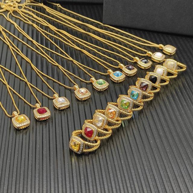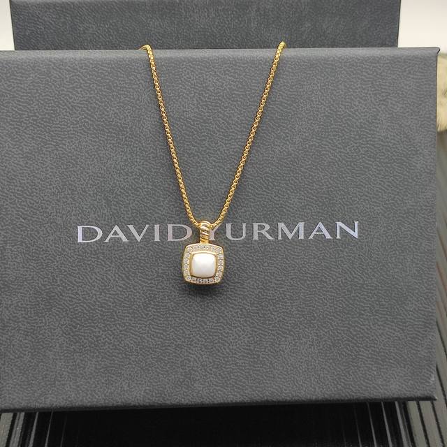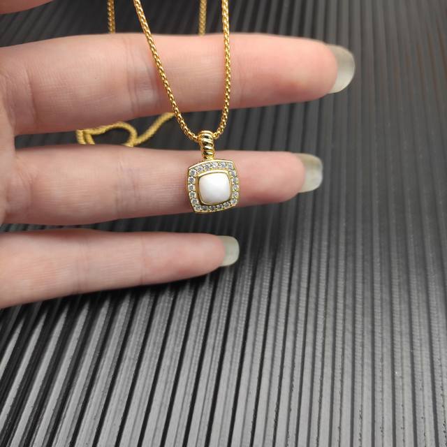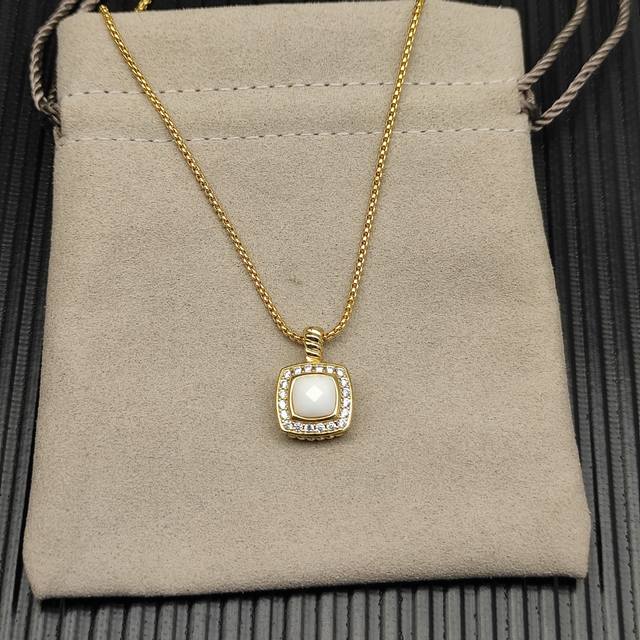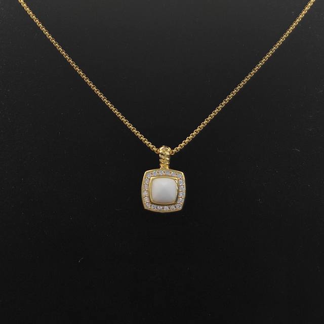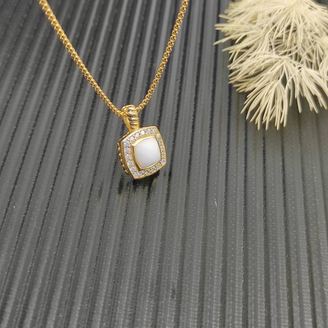 / David Yurman white agate and gold square diamond necklace. Chain thickness 1.5mm