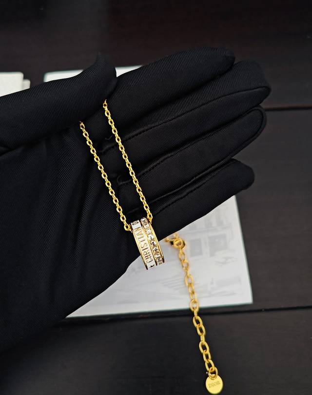 D*Or Latest style square diamond white oil letter ring necklace, identical to the original, made of brass.