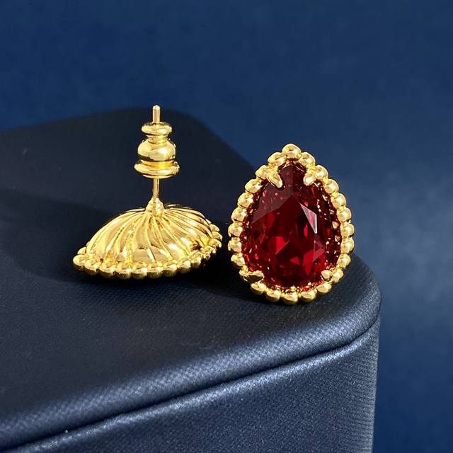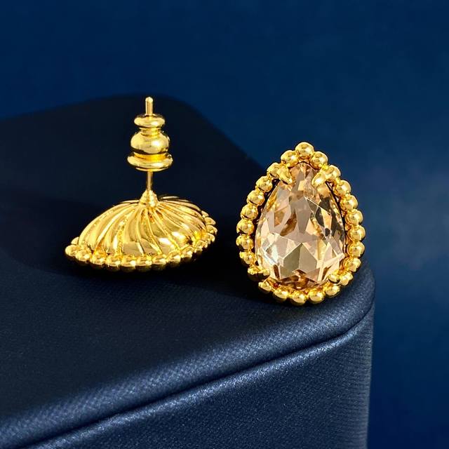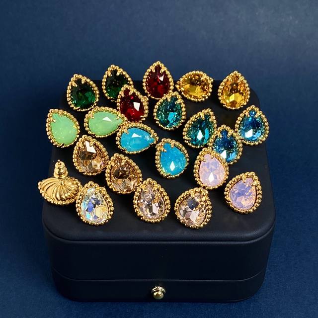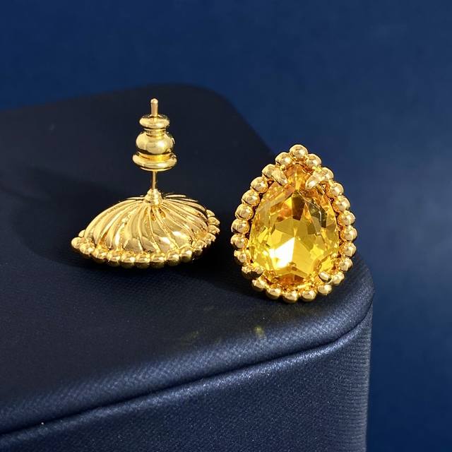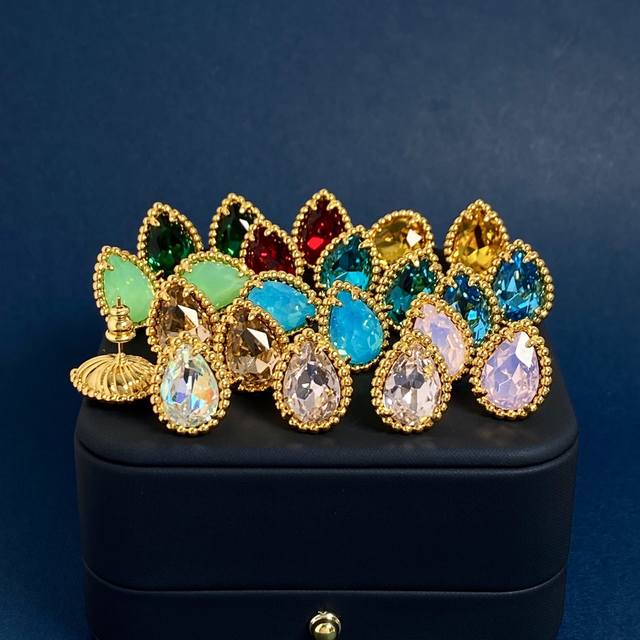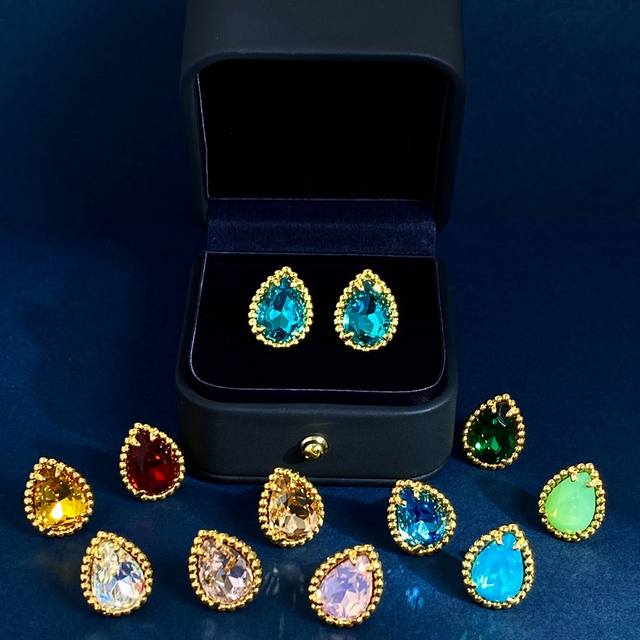 Unmarked Boucheron Style Made Dopamine Artificial Colored Gemstone Metal Beads Teardrop Shaped Imitation Crystal Large Single Diamond Earrings Gold Brass Material + Artificial Gemstone Electroplated 18K Gold 11 Colors