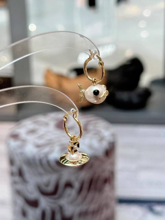 Earrings by Vivienne Westwood. What is Happy Planet? Come, this is Happy Planet! Highly recommended, you can't go wrong with this! The pure crown sphere is a classic symbol, while the sparkling Saturn rings outline the future. With its flowing light, it opens a brand new encounter with the future! Holding it in your hand, you can completely feel its texture, feel, and luster