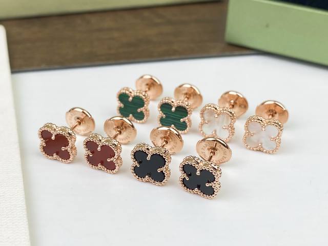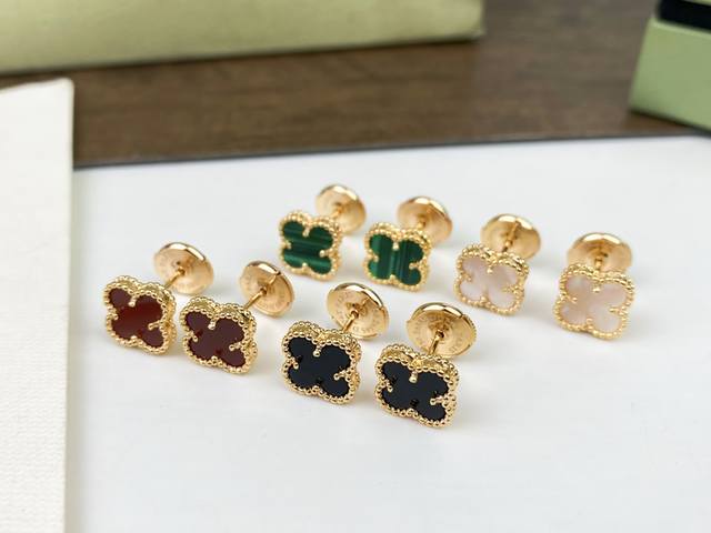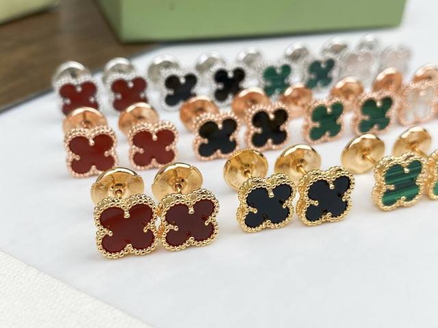 Flying Saucer Earplugs Vca Van Cleef & Arpels Small Four-Leaf Clover Earrings 1.0cm Mini Four-Leaf Clover Buling Buling ~ Paired with 925 silver needles ~ Hypoallergenic Perfect interpretation of high-end quality sub-gold electroplating 18K rose gold, yellow gold and white gold - Actual shot Seiko version of the full flower pattern paired with black agate, white mother-of-pearl, red agate, malachite, elegant first choice earrings, original flying saucer earplugs