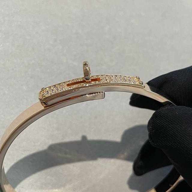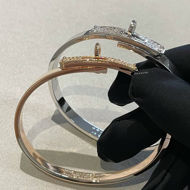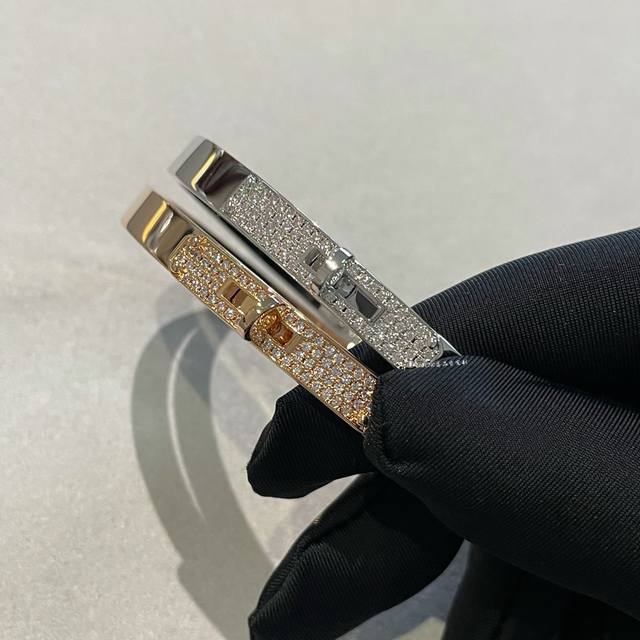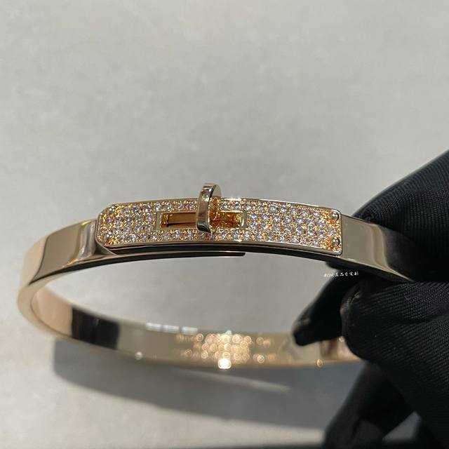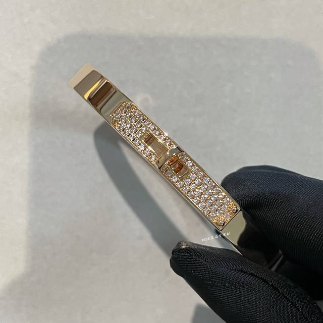 H Apocalypse Edition Kelly Bangle, half-diamond design, a labor of love. All hardware is machine-engraved, not cast. More importantly, this time we used a 1-mark thick real gold plating layer, thicker than the previous 0.5-mark, costing tens of dollars more in plating alone! Look at the engraving in the pictures; the depth of the font and the lines of each letter are excellent. Zoom in to appreciate the rose gold and white gold in stock.