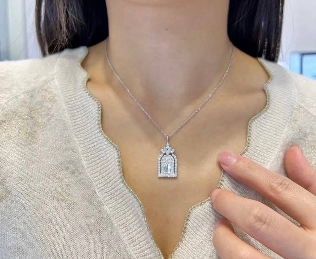 Harry Winston Hw Necklace, High-Quality Craftsmanship, White Gold, Versatile, 45cm Adjustable Chain, Diamond Necklace, a Must-Have for Goddesses, Matte Gold Material with Logo. (