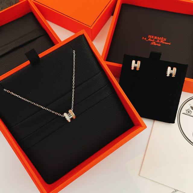 He092 DDD He Mes' latest silver pink and white H-shaped earrings are made of the same ZP brass material. They are very photogenic, have a unique design, and are worth buying from the high-end handcrafted series DDD.