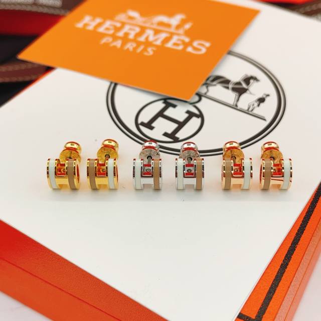 He096 DDD He Mes' latest silver tea-colored white H stud earrings are made of the same brass material as the original ZP. They are very photogenic, have a unique design, and are worth buying from the high-end handcrafted series DDD.