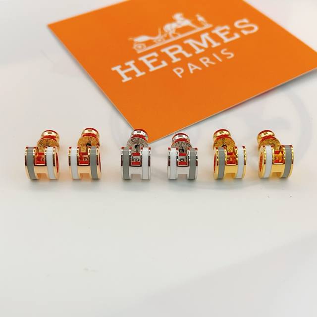He108 DDD He Mes' latest gold, gray, and white H-shaped earrings are made of the same brass material as the original, very photogenic, and have a unique design that's worth buying. A high-end handcrafted series DDD