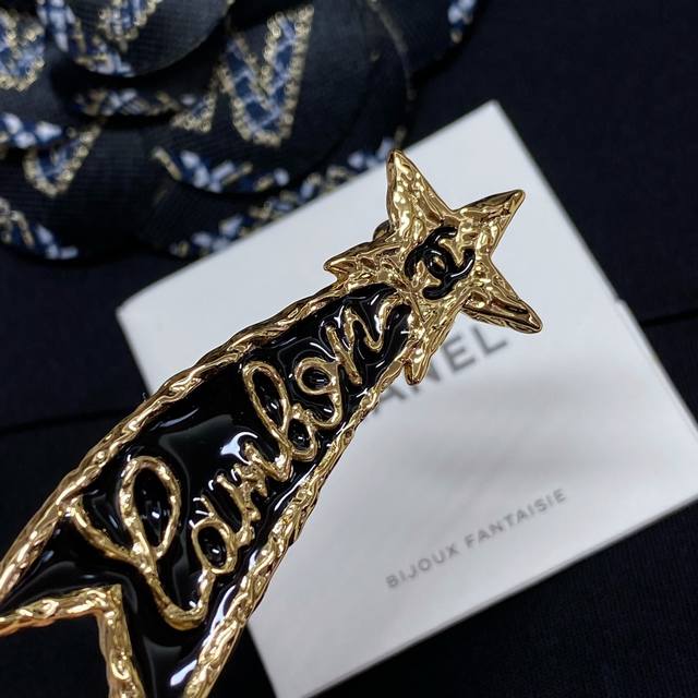 High-quality details as pictured! Chanel Black & Gold Letter Lava Star Brooch, Spring/Summer 2024 Newest Collection - Absolutely Stunning! First Release Online! As usual, first come, first served! Absolutely love it! Handwritten letters + stars