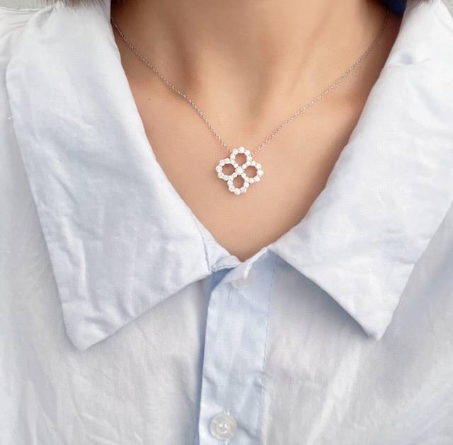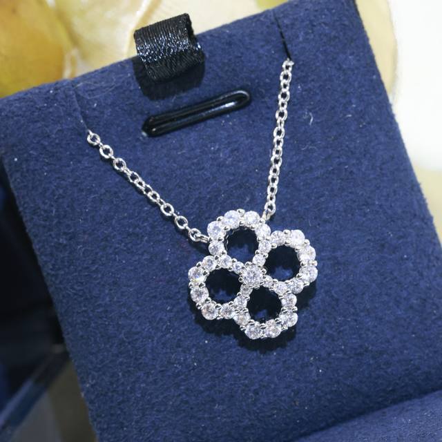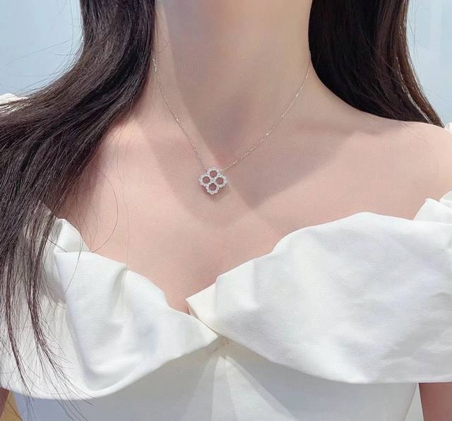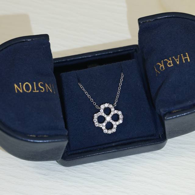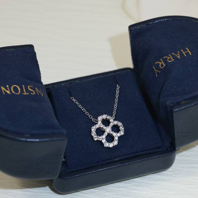 Hollowed-out Harry Winston classic four-leaf clover full diamond necklace, exquisitely crafted, identical to the original, the same style worn by many celebrities, beautiful, luxurious, elegant, and high-end, made of matte gold material plated with 18K gold! Stunningly beautiful, thick base version with curve, perfect replica Hw necklace