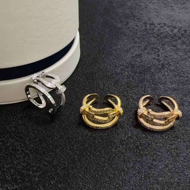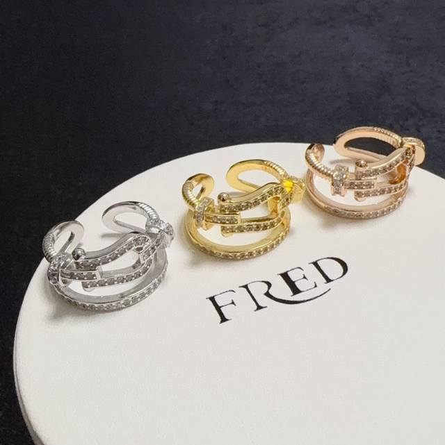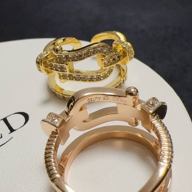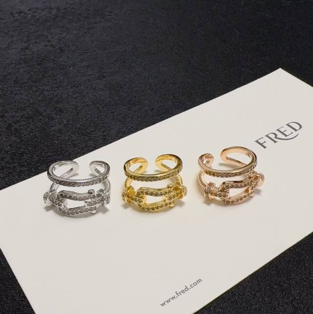 Hot New Fred Full Diamond Hollow Horseshoe Buckle, Nautical Buckle, Fortune Buckle, Figure 8 Buckle, High-Quality Cable Two-in-One Full Diamond Open Ring, Designer Fashionable and Exquisite Force Series Ring, High-End Customization ~ 18K Gold Micro-plating Horseshoe Buckle Ring! Extremely versatile, a must-have item for online influencers and fashionistas. Available in rose gold, yellow gold, and silver. Unisex and couple styles. Size: One size fits all.